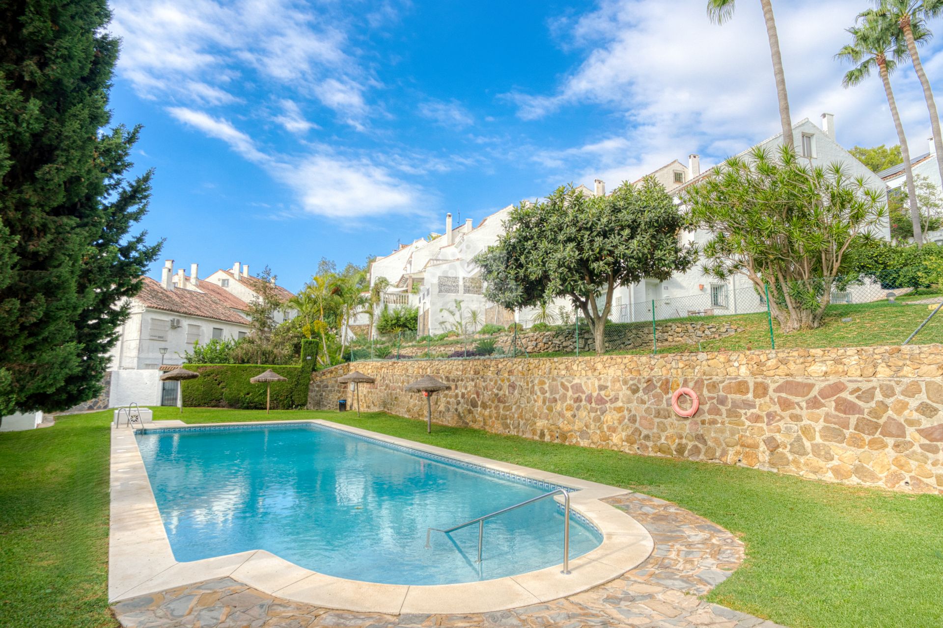 Ten piękny trzypokojowy, południowy dom jest położony w południowo-po strzeżonej społeczności El Capricho na Golden Mile Marbella, oferując przestronne tropikalne ogrody i dwa wspólne baseny. Idealnie położony w odległości spaceru od plaży, barów i restauracji, a zaledwie kilka minut jazdy od Marbella Center i Puerto Banús, nieruchomości łączy komfort z urokiem. Na parterze znajduje się jasny salon i jadalnia z kominkiem i dostęp do hojnego tarasu idealne na zewnątrz jadalnia, nowo odnowiona oddzielna kuchnia i WC dla gości. Schody prowadzą do dużej piwnicy obecnie używane jako sypialnia i studio sztuki z własną łazienką. Na górze, apartament jest wyposażony w dwie sypialnie i łazienkę. Dodatkowe atrakcje to wyposażone szafy, marmurowe podłogi i prywatny parking dla jednego samochodu.