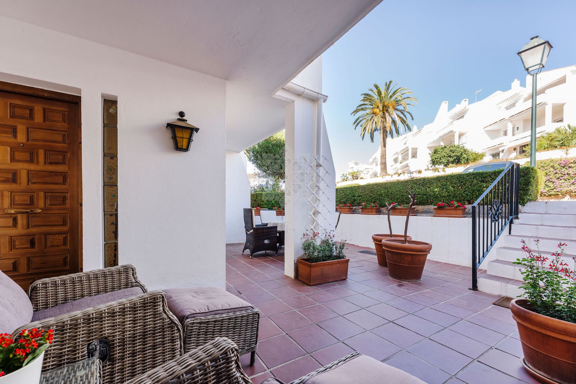 Lokalizacja, lokalizacja, lokalizacja! Andalucía Garden Club to jedna z najbardziej renomowanych i poszukiwanych wspólnot mieszkaniowych w Nueva Andalucía, idealnie położona zaledwie kilka minut spacerem od Puerto Banús, plaży oraz wszelkich udogodnień, a jednocześnie na tyle oddalona, by zapewnić ciszę i prywatność. Kompleks powstał na początku lat 80. XX wieku według najwyższych standardów tamtych czasów i do dziś pozostaje wzorem w okolicy dzięki bujnej zieleni, przestronnemu układowi oraz niezrównanej wygodzie.
