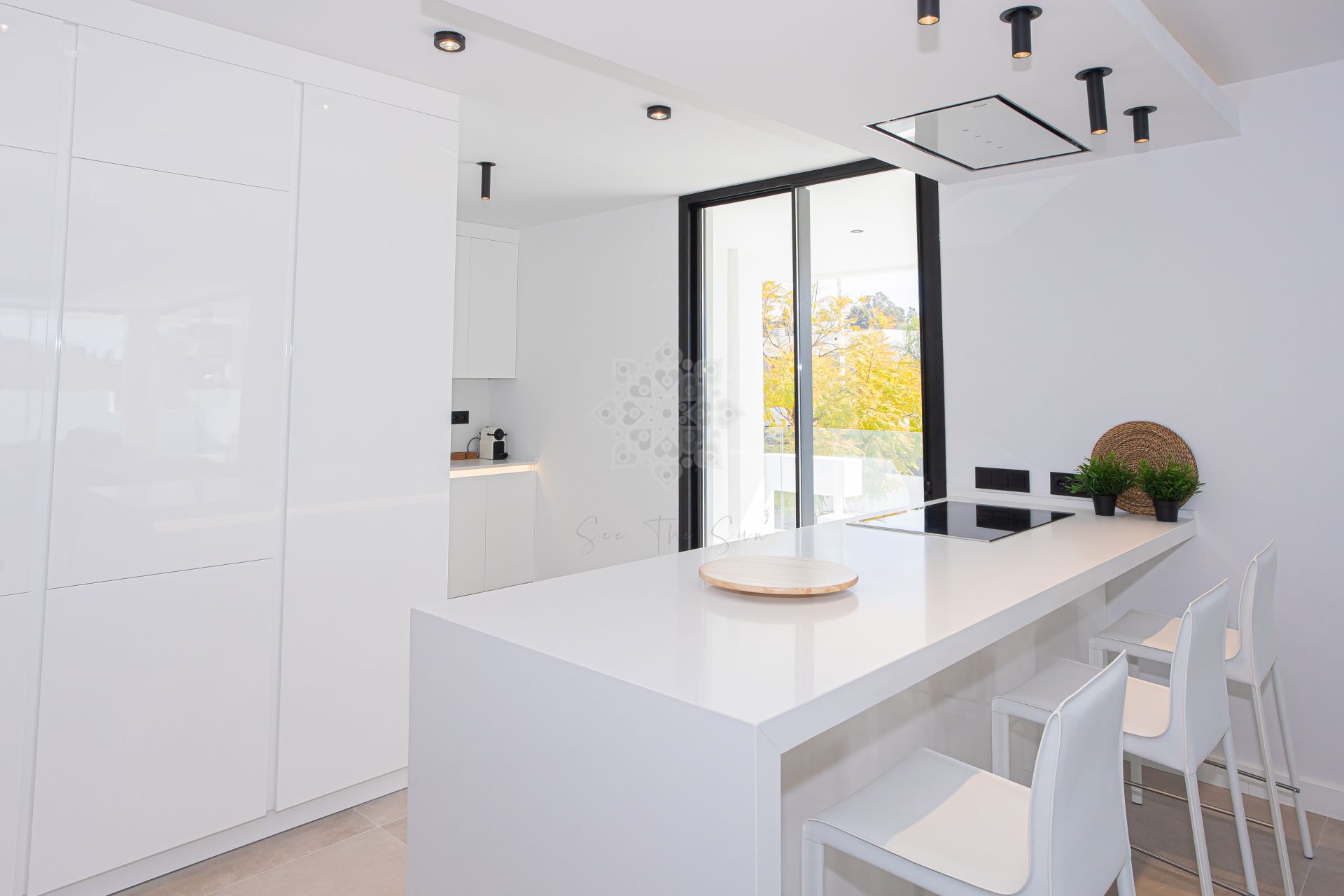 Located next to El Campanario Golf & Country Club with its Club House, Golf Course, Restaurant, Chill out Bar, gym, outdoor and indoor pools, jacuzzi, sauna, hammam, spa, tennis and paddle tennis courts and other activities. It is located in a quiet environment, but a short drive from the beaches, San Pedro de Alcántara and Puerto Banús.