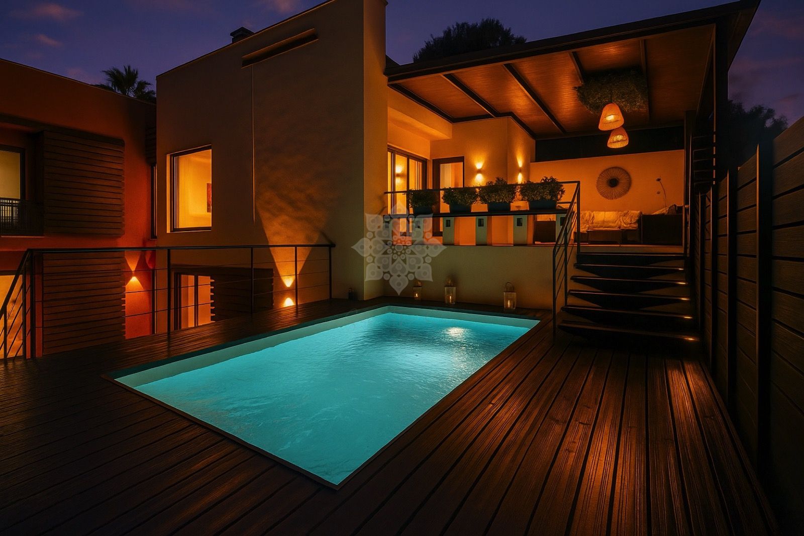 Spanning two levels across 285 m² of elegant space on a 400 m² plot, this bright and versatile residence boasts a comfortable layout designed for effortless living. The main living room seamlessly opens to a sun-drenched terrace leading to a private elevated pool with invigorating hydrojets—perfect for unwinding, entertaining, or soaking in the natural surroundings with total intimacy. The modern, functional kitchen is equipped for culinary delights, while the sleeping quarters feature two expansive master suites: one with a private balcony overlooking tranquil vistas, the other with direct garden access for a seamless nature connection. Both include en-suite bathrooms and fitted wardrobes. Adding exceptional value, an independent apartment serves as a fourth bedroom, home office, guest suite, or potential Airbnb rental. Practical amenities abound, including a spacious storage room and laundry on the main and semi-basement levels, all integrated for seamless daily organisation without compromising outdoor spaces.