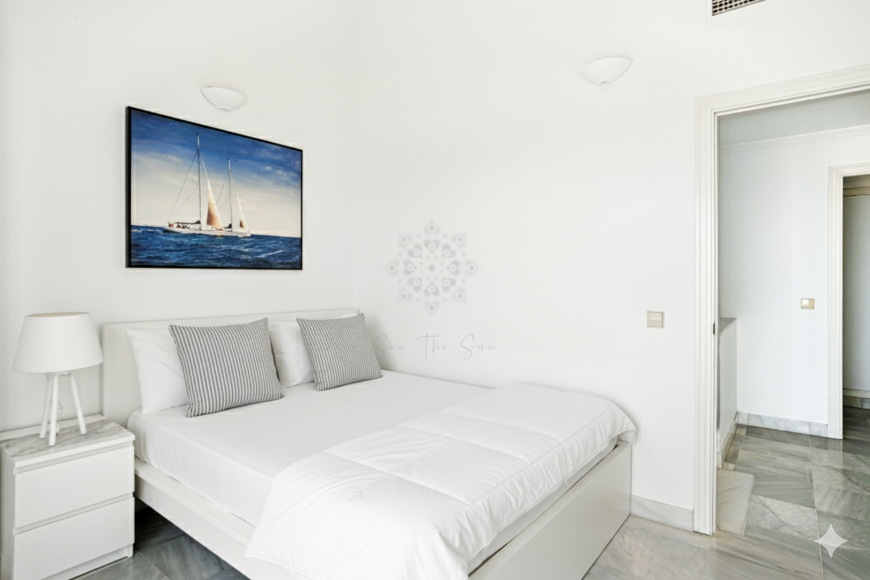 Beautiful south-facing apartment with magnificent sea views, located in the sought-after community of Pinos de Nagüeles, in Marbella’s prestigious Golden Mile. Within walking distance to the beach, shops, restaurants, cafés, and the promenade, and just a short drive to golf courses and international schools. This charming corner property enjoys a prime position and consists of three bedrooms and three bathrooms, with the master bedroom en suite. The two upstairs bedrooms each have their own private terrace. There is also a bright and spacious living-dining area and a main private terrace, perfect for relaxing or dining outdoors. The kitchen is fully equipped and designed for functionality, complete with a separate laundry room. The property offers the perfect combination of comfort and location, set within a gated development featuring 24-hour security, beautifully maintained gardens, a paddle/tennis court, clubhouse, and a large communal swimming pool. Additional features include marble flooring, air conditioning, an elevator, an underground parking space conveniently close to the lift, and a bus stop just a few hundred metres from the apartment. The community offers a peaceful yet well-connected environment.