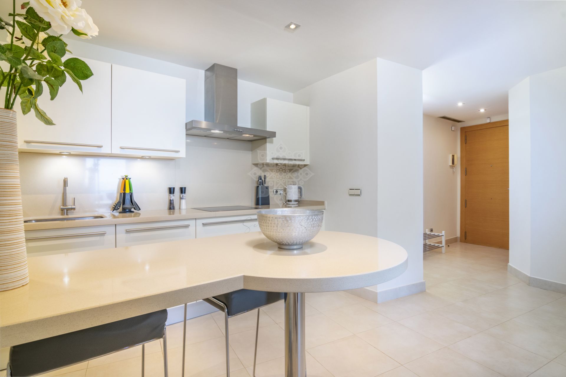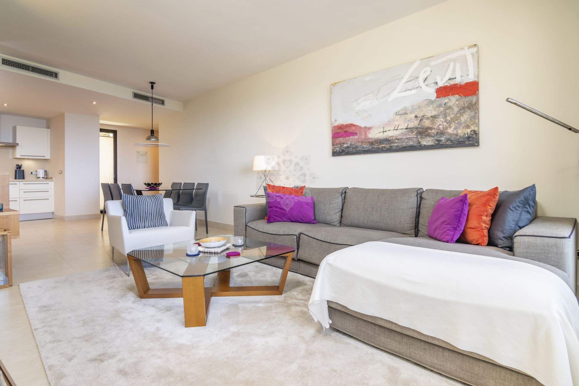 Stylish and modern, this two bedroom apartment in the exclusive Samara Resort in Marbella offers stunning panoramic views of the Mediterranean Sea. Located on the first floor with easy access through the resort’s beautifully landscaped gardens, the apartment features a bright and open layout that seamlessly connects the fully equipped kitchen, dining area, and living room, perfect for relaxed coastal living. Both bedrooms open onto a spacious terrace overlooking the pool and sea, while the master suite includes an elegant en-suite bathroom, dressing area, and ample built-in wardrobes. A second bathroom with a sleek, minimalist design, along with a laundry room and storage space, add everyday convenience. Set within a luxury gated community with 24-hour security, residents can enjoy outstanding amenities including a spa, sauna, jacuzzi, massage room, indoor heated pool, gym, and two outdoor pools, one an impressive infinity pool with breathtaking sea views.