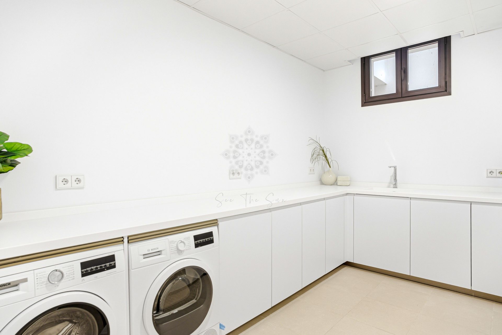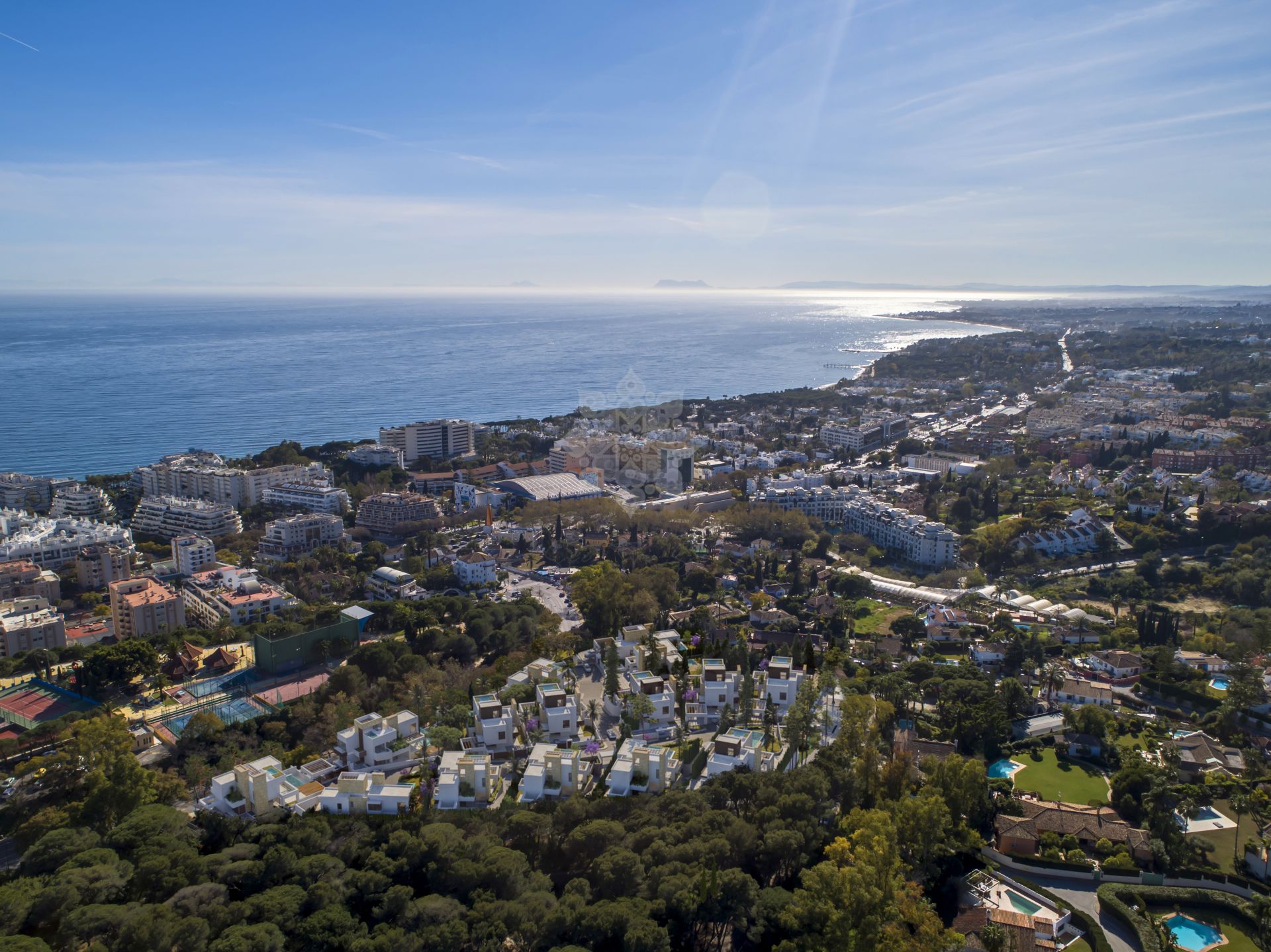 Newly built luxury, southwest-facing villa of exceptional quality, located in an exclusive gated community of just 15 villas with 24-hour security and concierge services. Set within a lush green oasis on the edge of Marbella’s iconic Golden Mile, the property is only metres from the beach and a short walk to Marbella Old Town, bars and restaurants. Built over three levels plus a rooftop solarium, this newly completed villa offers four bedrooms, four bathrooms and two additional WCs. The main living area features an elegant open-plan layout with a designer kitchen equipped with Gaggenau appliances and premium finishes. A private lift connects every floor for maximum comfort and convenience. The villa includes a range of luxury amenities, such as underfloor heating throughout, a domotic smart-home system, solar panels, and a double garage with an electric car charger. The lower level is dedicated to wellness and entertainment, featuring a private hammam and sauna, a temperature-controlled wine cellar, a cinema room, and a multi-functional space ideal for a games room, gym, studio, or additional entertainment area. Outdoor living is exceptional: enjoy a private heated saltwater pool in the garden, and a plunge pool on the rooftop solarium, where beautiful sea views create the perfect backdrop. Both the garden and pool are centrally maintained by the community for effortless, lock-and-go living. A rare opportunity to acquire a turnkey, high-spec villa in one of Marbella’s most prestigious and sought-after beachside locations.
