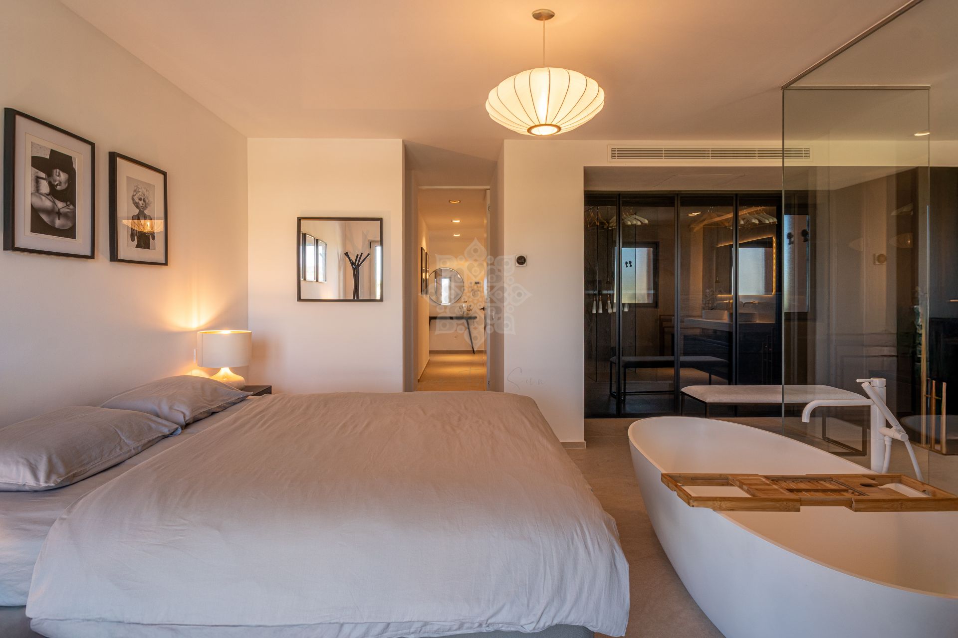This three-bedroom apartment is located in the popular Ribera de la Romana residential complex in Sotogrande Marina, within walking distance of the port with all its restaurants, shops, and the Sotogrande beach. The apartment has been completely renovated with great attention to detail and high-quality finishes. Spacious and open-plan, the apartment has a total of 211 square meters. The bright entrance area is inviting and opens into the spacious living area with a stylish oil fireplace. To the front, there is a further lounge and dining area, which is flooded with light thanks to the fully opening windows and offers fantastic views of Sotogrande marina. The new high-quality fitted kitchen is open to the dining area and all the technical appliances are of the highest quality, such as Smeg appliances from the Dolce & Gabbana line. The apartment has three bedrooms, all with fitted wardrobes and en-suite bathrooms. A particular highlight is the spacious master bedroom, which has a walk-in wardrobe with glass doors and indirect lighting, as well as an open-plan bathroom with a large walk-in shower and a floating bath. Everything in the apartment is of the highest quality and is being sold fully furnished. Other features include: new Daikin air conditioning, a special indirect lighting system throughout the apartment, a storage room, and an underground parking space.