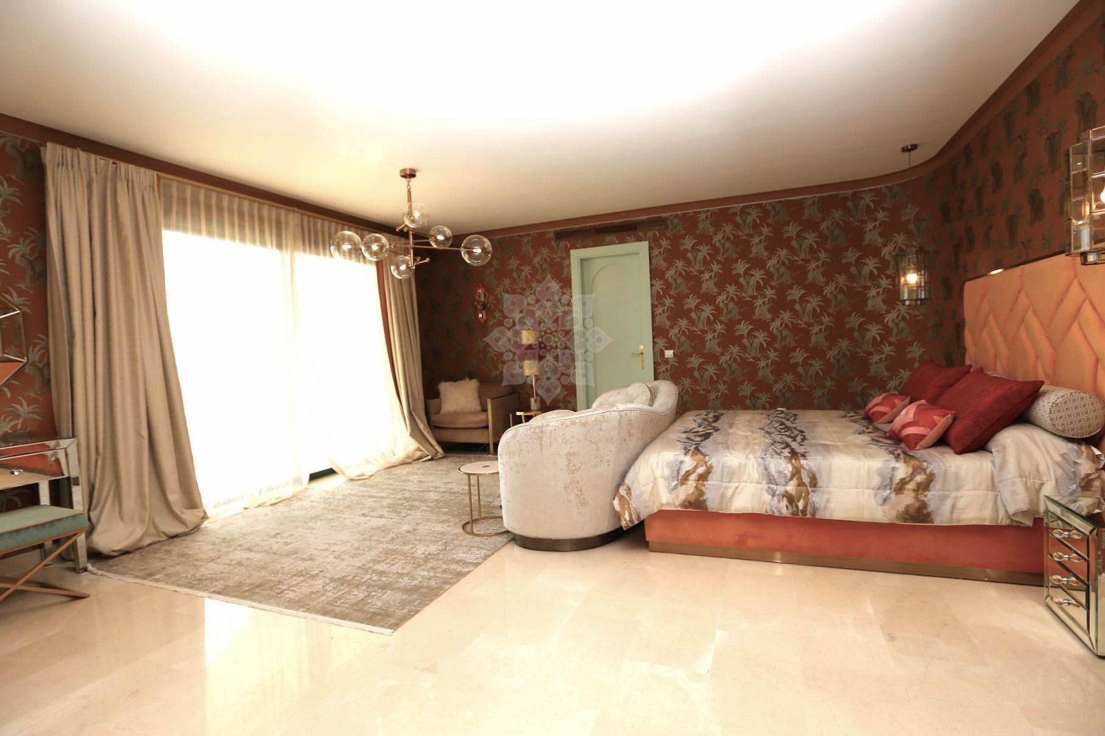 This outstanding luxury villa is situated in the prestigious enclave of Selwo, Estepona East, Estepona, Malaga. Set within a gated community and benefitting from 24-hour security service, this remarkable residence combines contemporary elegance with sophisticated functionality, offering unrivalled levels of comfort and convenience. Spanning an impressive built area of 931m² on a generous 2,004m² plot, the property boasts five spacious bedrooms, each with en-suite bathrooms, as well as two additional toilets for guests and visitors.