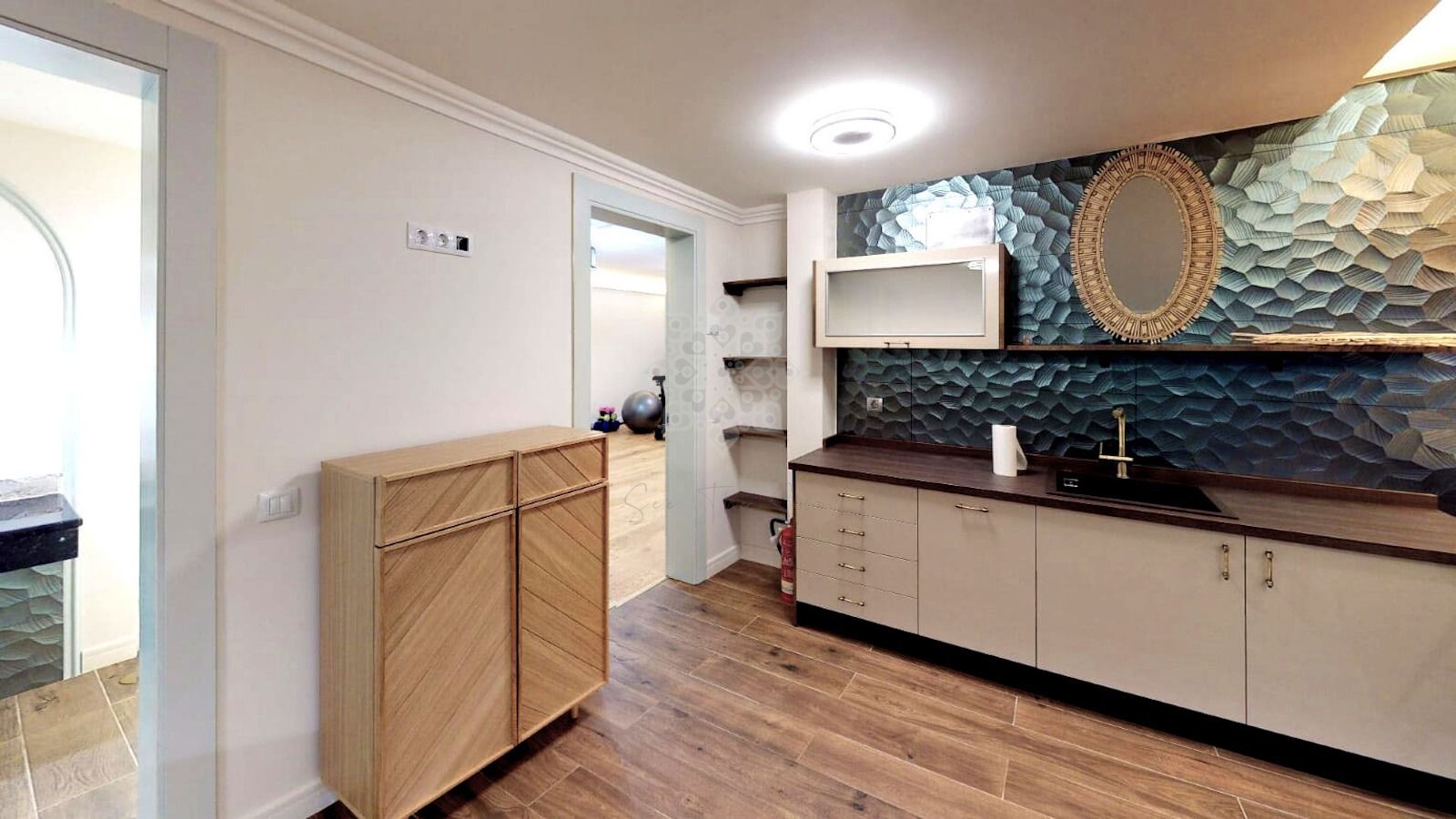 The villa is thoughtfully designed for both entertaining and everyday living. The capacious, open plan living areas are complemented by a separate dining room and an additional guest toilet. The fully fitted, open plan kitchen is equipped to the highest standards, with an adjacent utility room and laundry room ensuring seamless practicality. The home comes fully furnished and in excellent condition, featuring luxurious finishes throughout, including underfloor heating (both full and partial), air conditioning, double glazing, and an aerothermal system for optimal energy efficiency.
