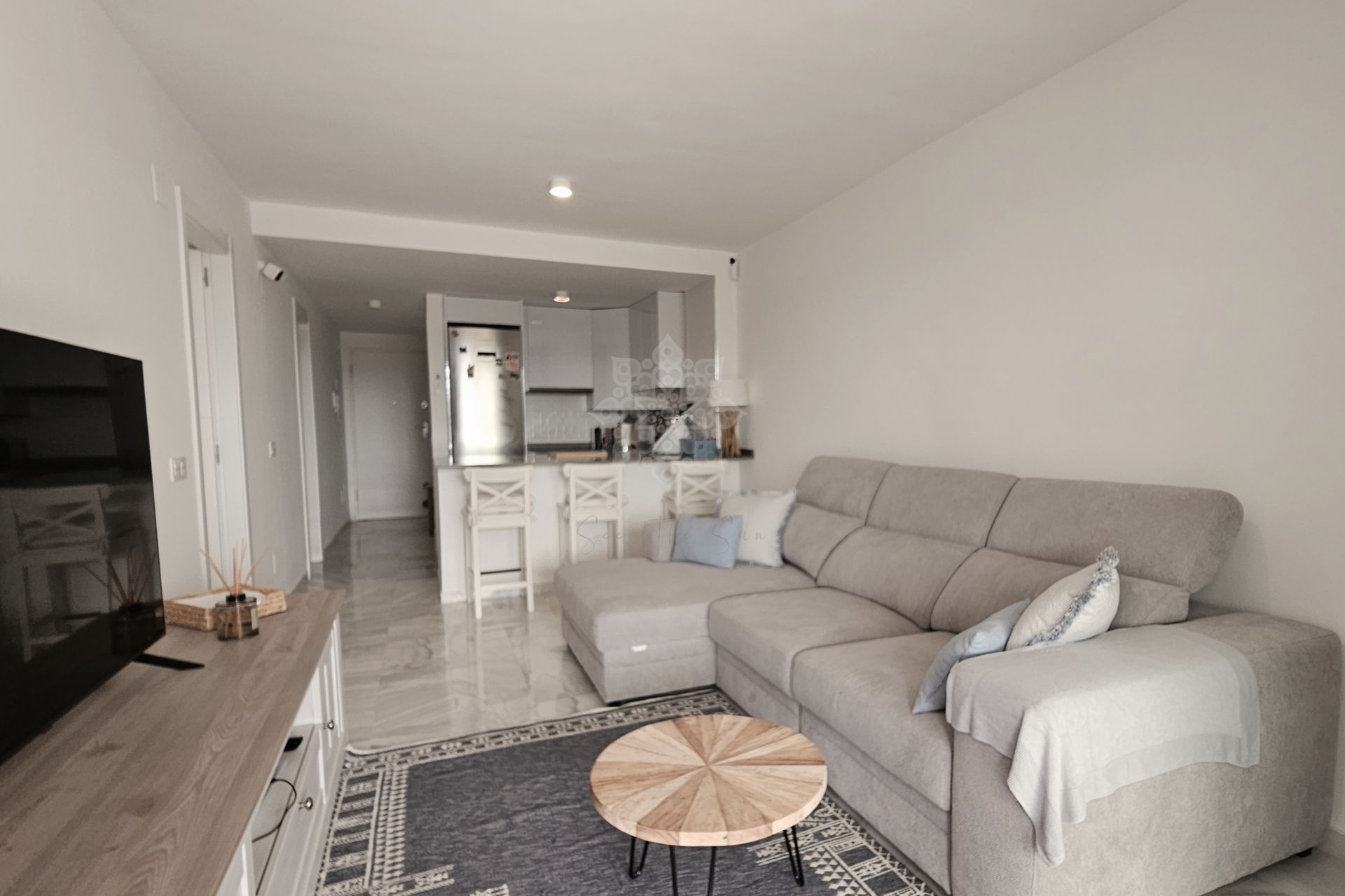 A bright and modern first-floor apartment located in the peaceful Doña Julia Golf Resort, Casares Costa. The property offers a functional layout with an open-plan living area, a fully equipped kitchen, two bedrooms, and two bathrooms.