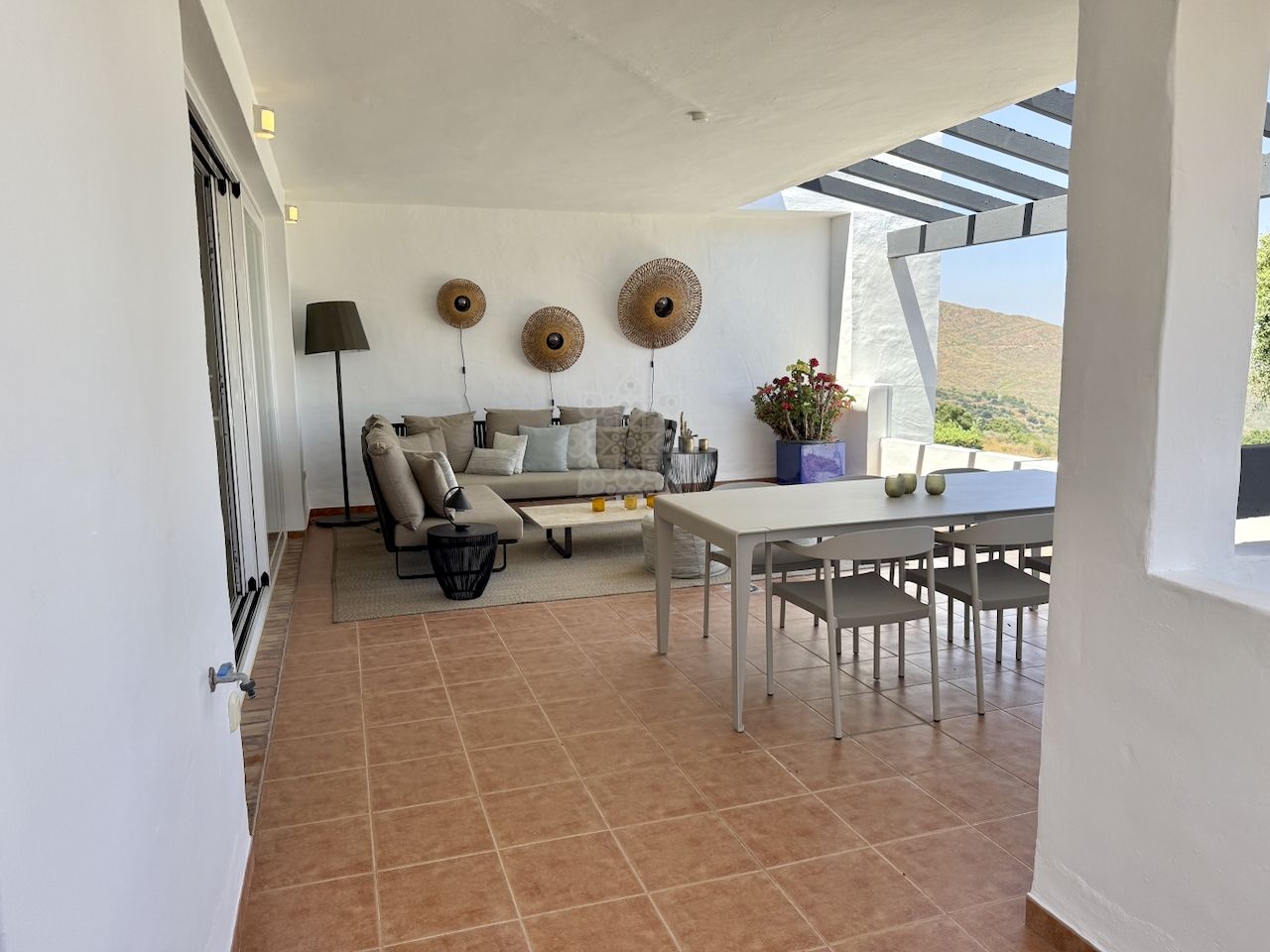 This elegant three-bedroom apartment with 2 private parkings is situated in the sought-after area of La Mairena, Marbella East, offering a harmonious blend of comfort, style, and convenience. The property boasts a generous built area of 148m² complemented by a spacious 53m² terrace, providing ample space for both indoor and outdoor living. Located within a secure gated community, residents benefit from a peaceful environment with mature communal gardens and a large communal pool, perfect for relaxation and leisure.
