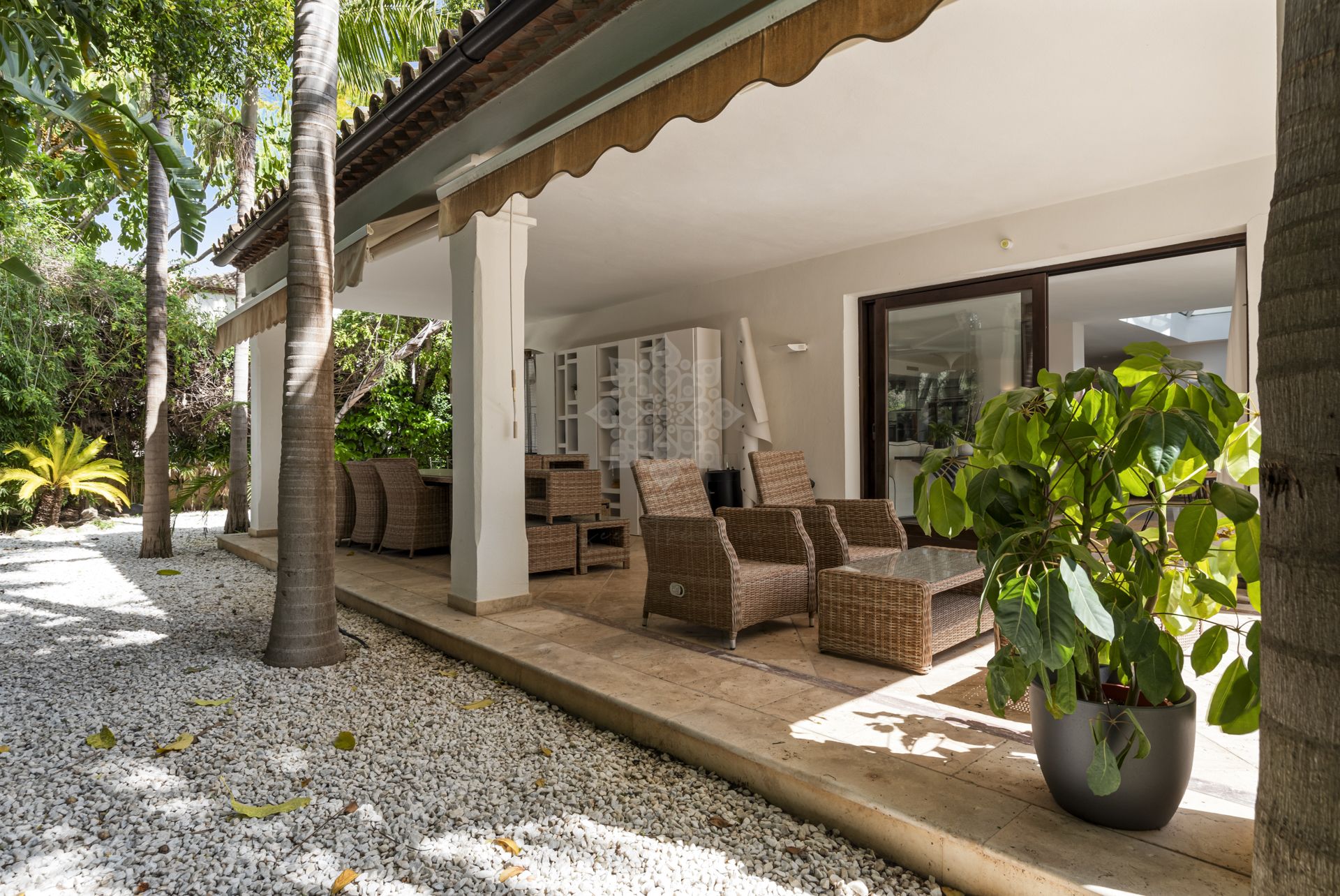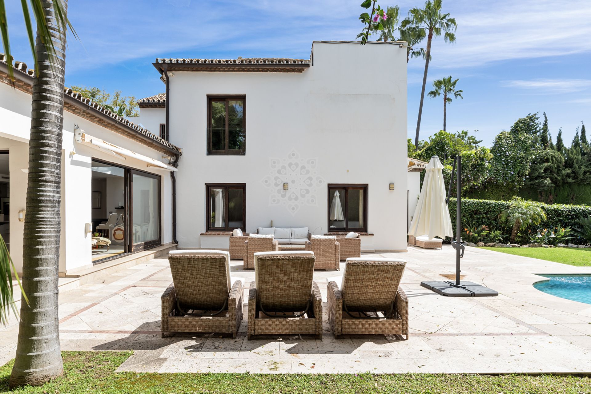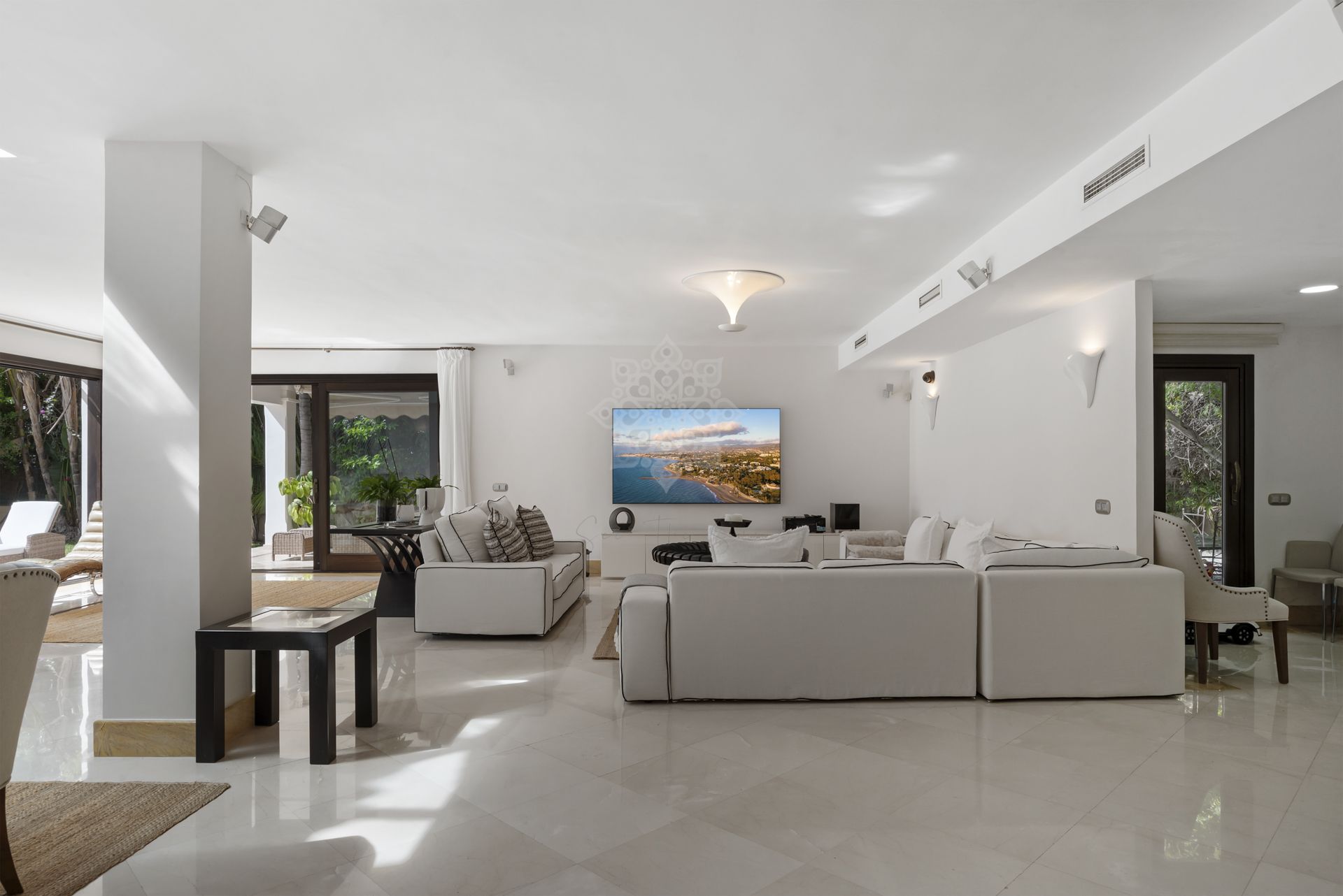 Welcome to this unique south facing villa, located second line from the golf course, within walking distance to Centro Plaza, Aloha Garden, Puerto Banus, a range of well known golf courses including Aloha and Las Brisas, bars, restaurants and supermarkets.