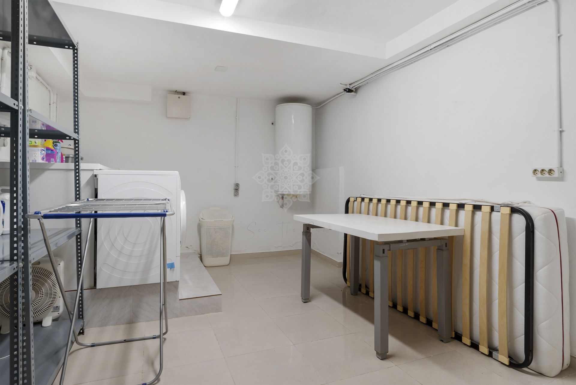In the basement is a store room, laundry room, garage for the 2 cars and space to make a gym or a cinema room.