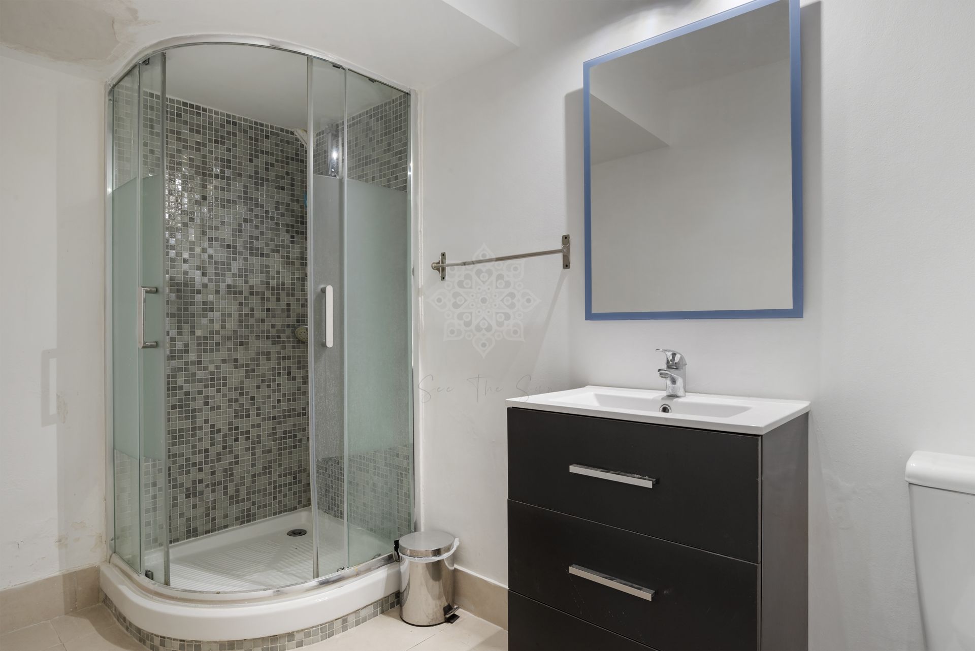 The villa itself is composed of an entrance hall, great large living room with dining area, part covered with a glass roof allowing alot of light to enter, fully fitted open plan modern kitchen including breakfast bar, four bedrooms, plus another bedroom in the basement, four bathrooms, a guest toilet, and a terrace o the master bedroom with access to a small rooftop terrace.