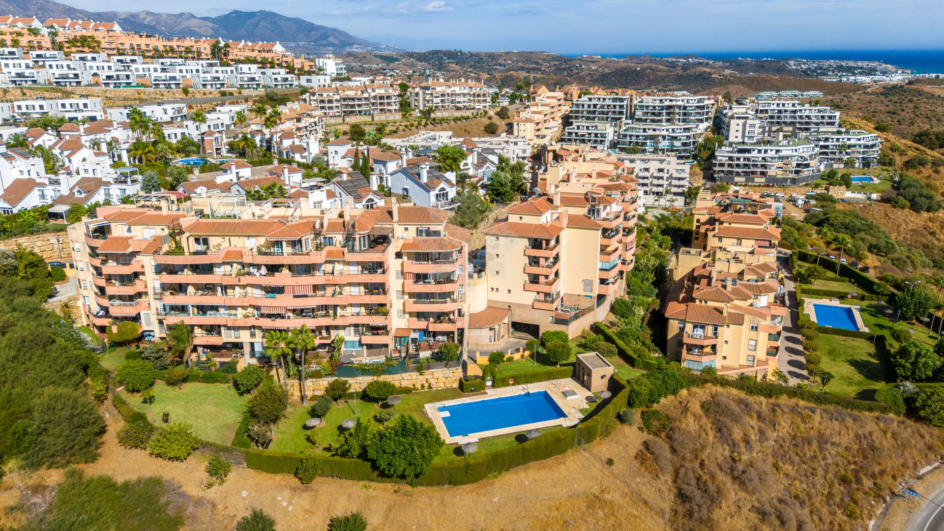 Impecable apartamento de dos dormitorios con orientación sur, situado en la comunidad cerrada de Terrazas del Sol, un complejo muy bien mantenido en la parte superior de Riviera del Sol. Los residentes disfrutan del acceso a una gran piscina comunitaria y exuberantes jardines ajardinados. A solo media hora en coche del aeropuerto de Málaga, con una parada de autobús cerca más la propiedad está también cerca de pistas de tenis, campos de golf, restaurantes y tiendas. La propiedad está totalmente reformada y diseñada para vivir moderna con un luminoso salón y cocina de planta abierta; dormitorio principal; baño de invitados; y una terraza privada con impresionantes vistas panorámicas al mar; perfecto para relajarse y ver el atardecer. Otras características incluyen una nueva unidad AC, plaza de aparcamiento privado y lavadero seperte.