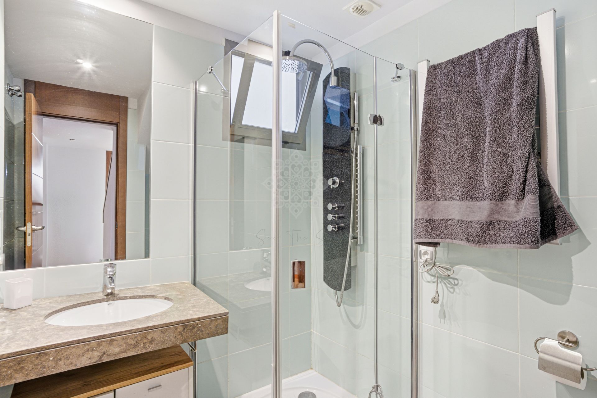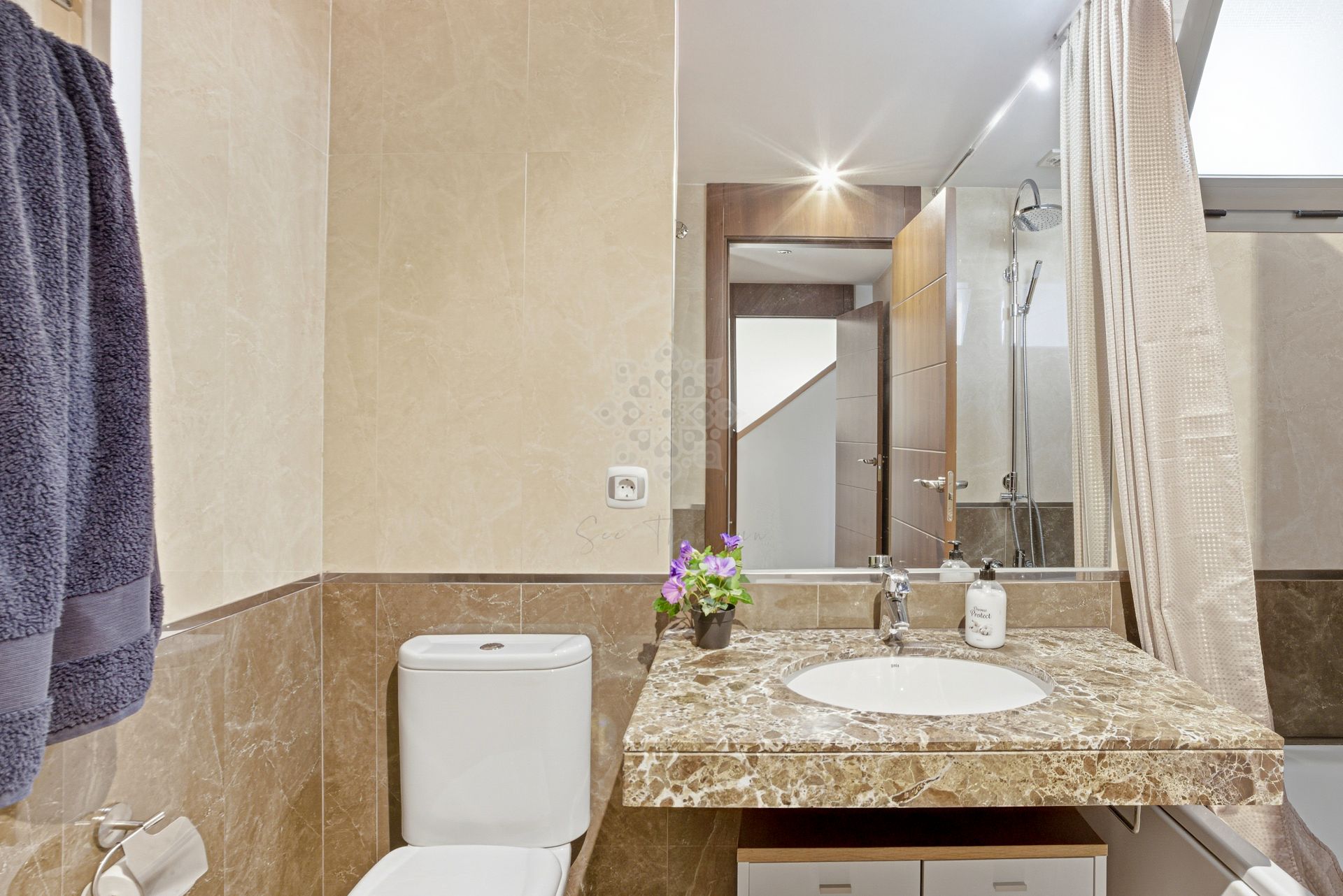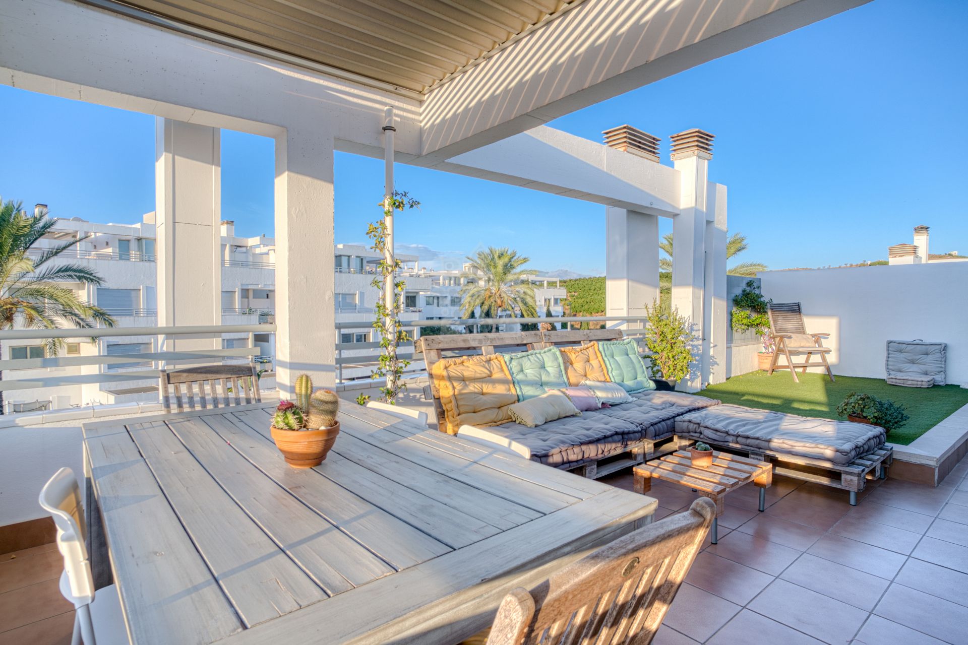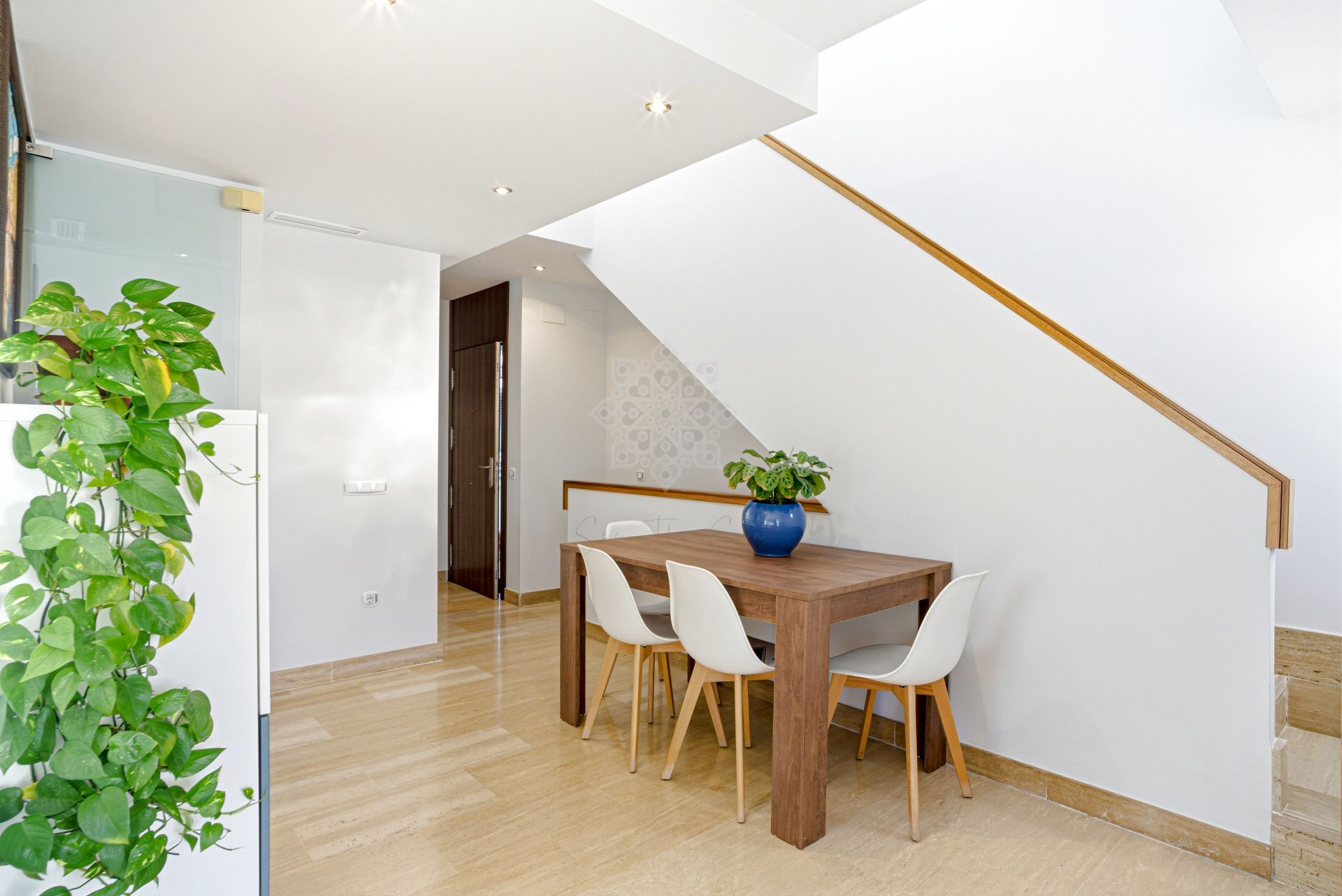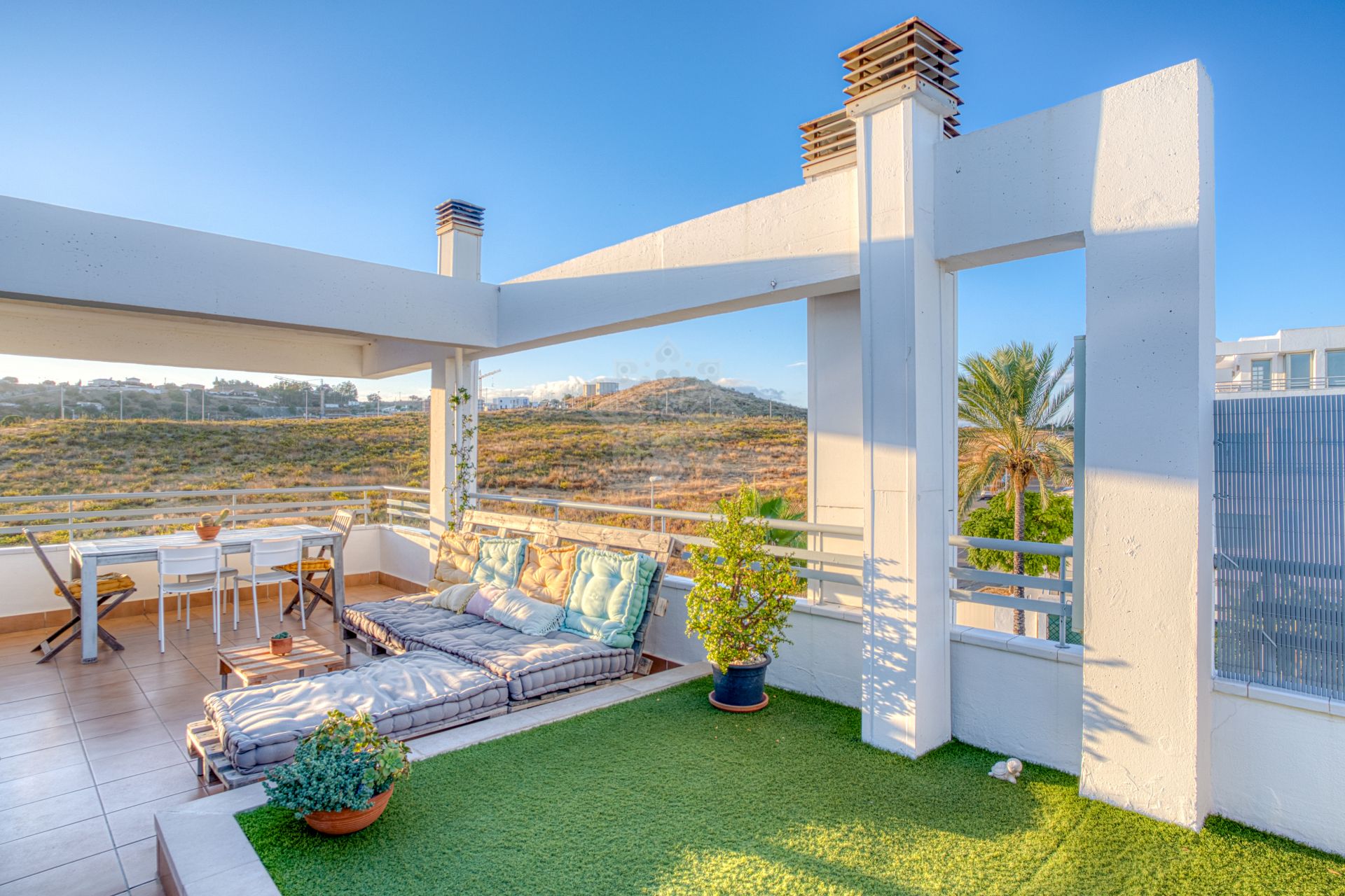 Hermoso ático dúplex orientado al oeste, situado en la exclusiva zona de La Cala Golf, uno de los desarrollos más tranquilos y buscados en Mijas Costa. A pocos minutos en coche de la playa, restaurantes, supermercados y campos de golf, esta propiedad combina perfectamente comodidad, privacidad y un entorno natural. El apartamento está distribuido en tres plantas y cuenta con tres dormitorios y tres baños. En la planta principal, hay un luminoso y amplio salón-comedor, un aseo de invitados, una cocina totalmente equipada, una zona de lavandería, y acceso a una gran terraza con comedor perfecto para disfrutar de las vistas de la piscina y el campo de golf. El nivel inferior comprende el dormitorio principal con baño en suite, un segundo dormitorio, otro baño completo, y una tercera habitación actualmente utilizada como oficina, que ofrece un espacio versátil y confortable. La planta superior cuenta con un solárium impresionante con vistas panorámicas, con un jacuzzi y una zona de barbacoa, el lugar perfecto para relajarse o entretener mientras disfruta de las hermosas puestas de sol. La comunidad cerrada ofrece tres piscinas, dos plazas de aparcamiento privado, un trastero, un ascensor y jardines muy bien mantenidos, garantizando tanto la seguridad como la comodidad de los residentes. Otras características incluyen aire acondicionado, persianas en todas las habitaciones, suelos de madera y porcelana, y calefacción por suelo radiante en los baños, añadiendo elegancia, comodidad y calidez en toda la casa. Con su excelente orientación oeste, la propiedad se beneficia de mucha luz natural en las tardes, por lo que es ideal para disfrutar de impresionantes puestas de sol. Esta propiedad es perfecta como una residencia permanente o una segunda casa, que ofrece una ubicación tranquila pero bien conectada cerca de todas las principales atracciones a lo largo de la Costa del Sol.