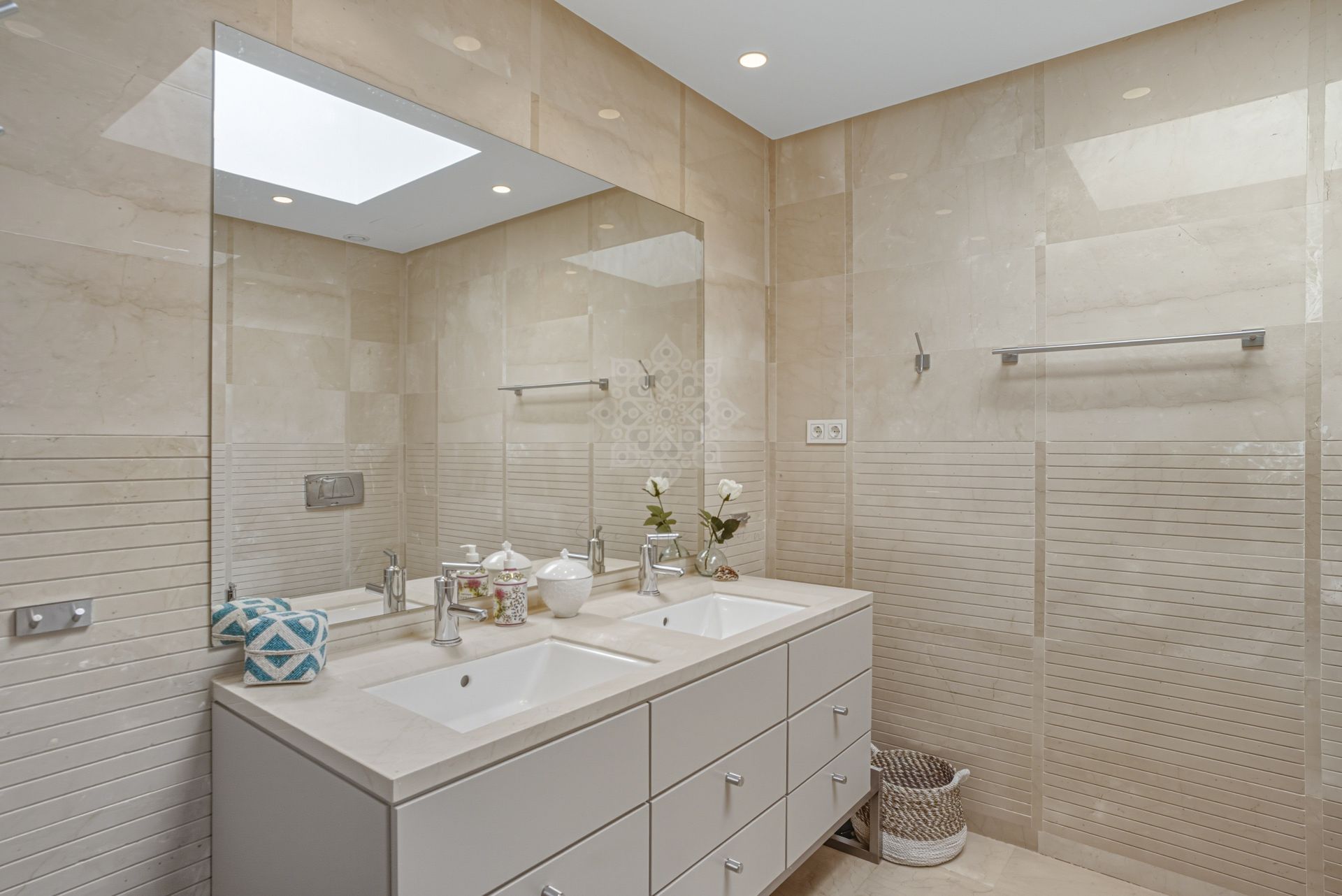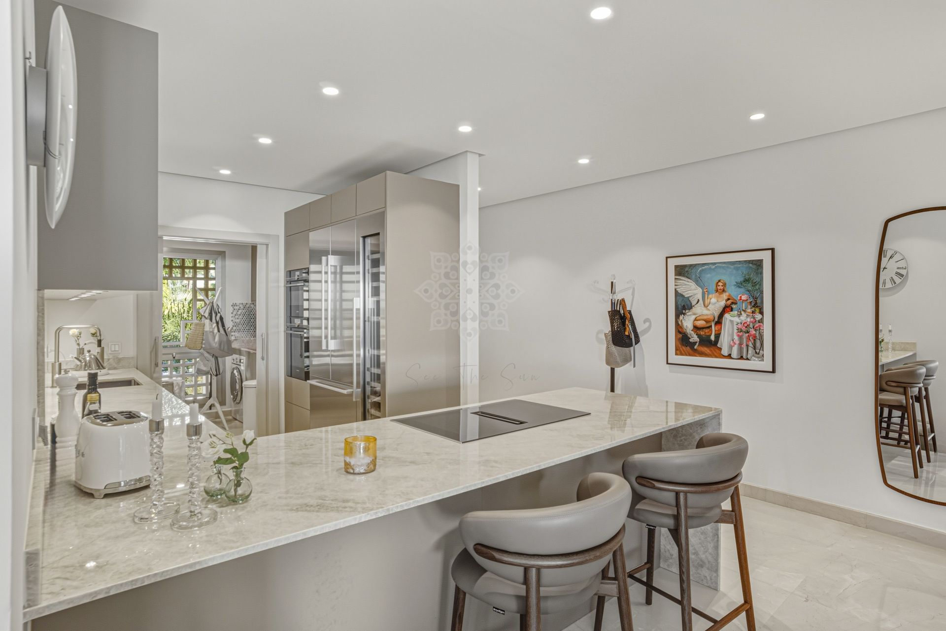 Hermoso, orientado al suroeste y elegantemente renovado, este ático de dos dormitorios totalmente amueblado en el prestigioso Mansion Club Marbella ofrece impresionantes vistas panorámicas del Mediterráneo y exuberante entorno. Completamente modernizado a los más altos estándares, cuenta con espacios abiertos brillantes, un salón elegante que conduce a una gran terraza, y una cocina elegante y totalmente equipada. Ambos dormitorios incluyen baño en suite y armarios empotrados, combinando comodidad con el diseño contemporáneo. La propiedad se beneficia de doble acristalamiento y calefacción por suelo radiante en todas partes, así como de un aparcamiento y trastero. Ubicado en una comunidad cerrada con seguridad las 24 horas, los residentes disfrutan del acceso a servicios de primera clase, como piscinas cubiertas y al aire libre, gimnasio, sauna, baño turco y hermosos jardines tropicales, a pocos minutos de la playa y Puente Romano Resort.