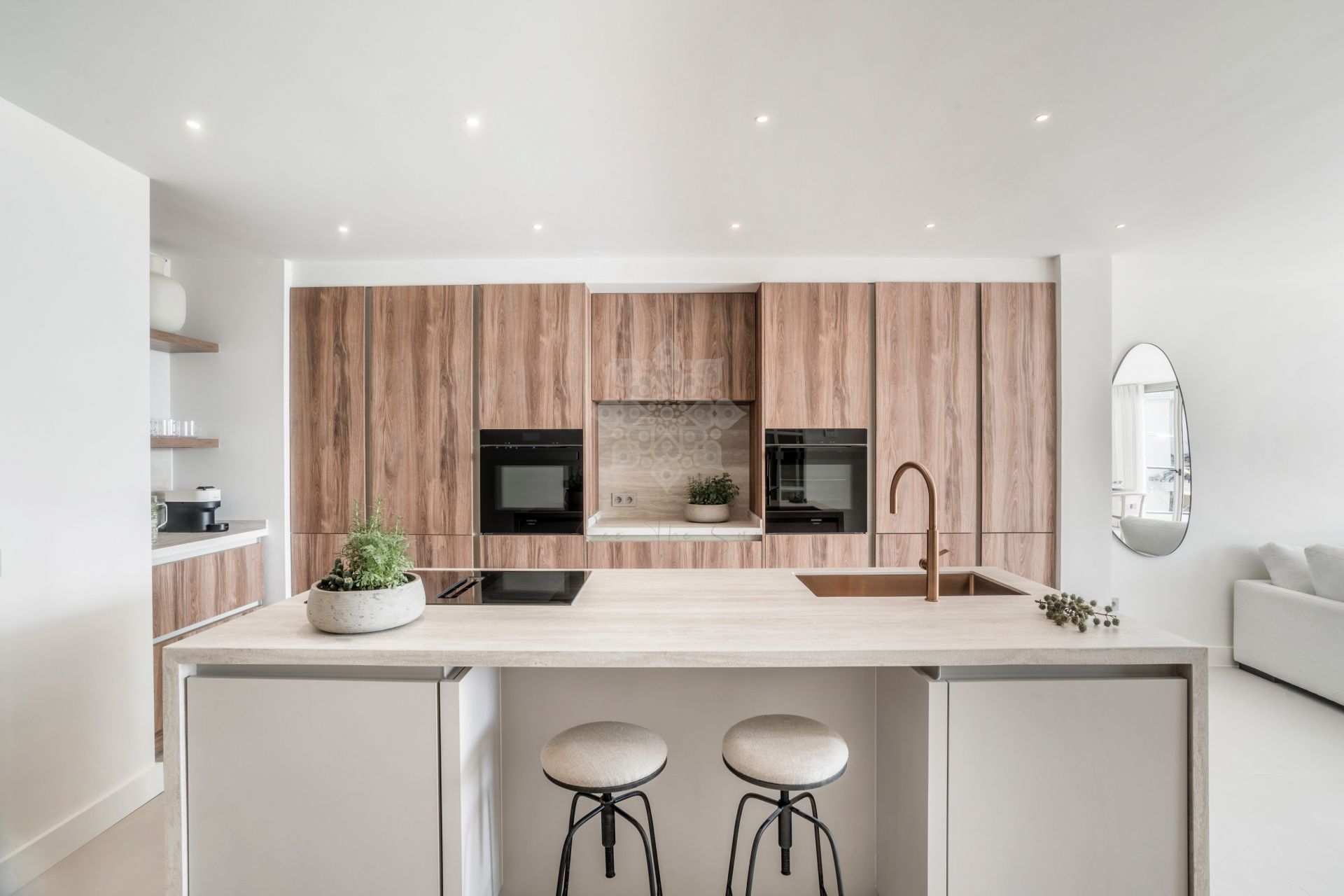 El apartamento dispone de tres amplios dormitorios, cada uno con su propio cuarto de baño, proporcionando privacidad y comodidad para los residentes e invitados. Suelo radiante en todo el apartamento.