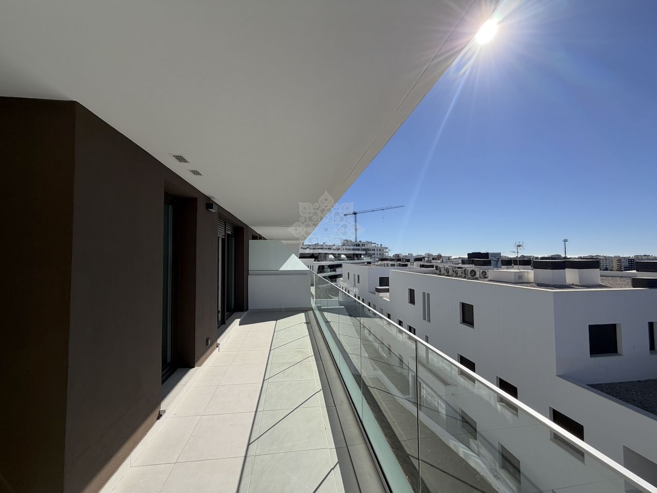 Ubicado en el pintoresco pueblo de Estepona, Málaga, este apartamento de tres dormitorios de nueva construcción ofrece una armoniosa combinación de diseño moderno y comodidad. Disponible exclusivamente a través de agencia única, esta propiedad es un ejemplo destacado de vida contemporánea, con una superficie total construida de 146,8m², que incluye un interior espacioso de 92m² y una encantadora terraza de 20,8m². Su ubicación es ideal, con proximidad a servicios, enlaces de transporte, tiendas, escuelas y restaurantes, lo que lo convierte en una elección perfecta para familias o profesionales que buscan un estilo de vida vibrante pero tranquilo.