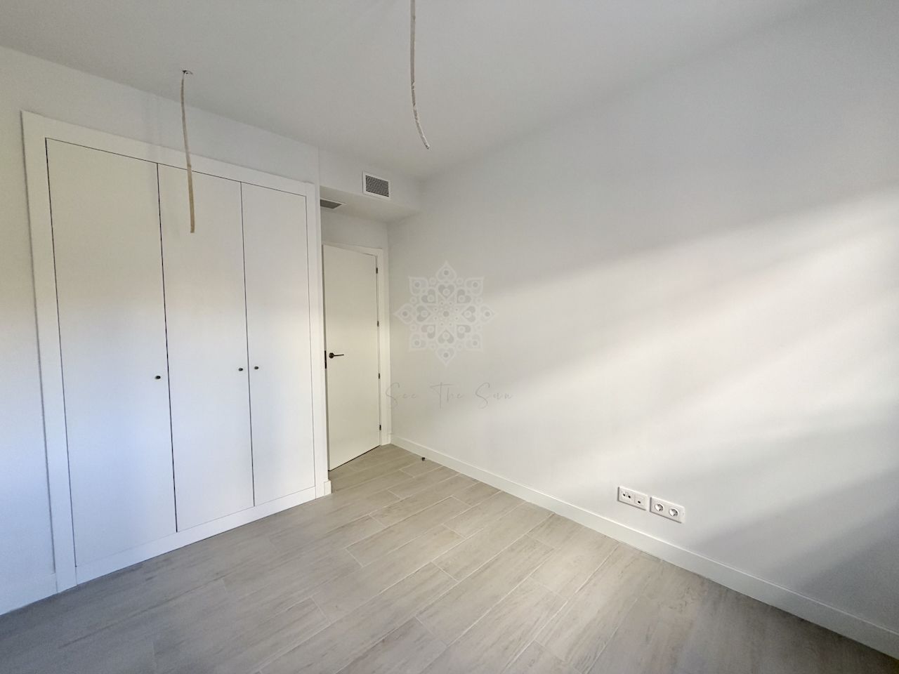 El apartamento cuenta con tres dormitorios de generosas dimensiones, incluyendo uno con baño en suite, complementado por un baño adicional y dos aseos. Los espacios habitables están diseñados cuidadosamente, con una sala de estar luminosa y aireada, un comedor y una cocina totalmente equipada con un lavadero. Los acabados de alta calidad y las comodidades modernas, como aire acondicionado, calefacción central y un sistema de refrigeración en el techo, garantizan comodidad durante todo el año. La propiedad también se beneficia de tecnología aerotérmica avanzada y paneles solares, reflejando un compromiso con la eficiencia energética.
