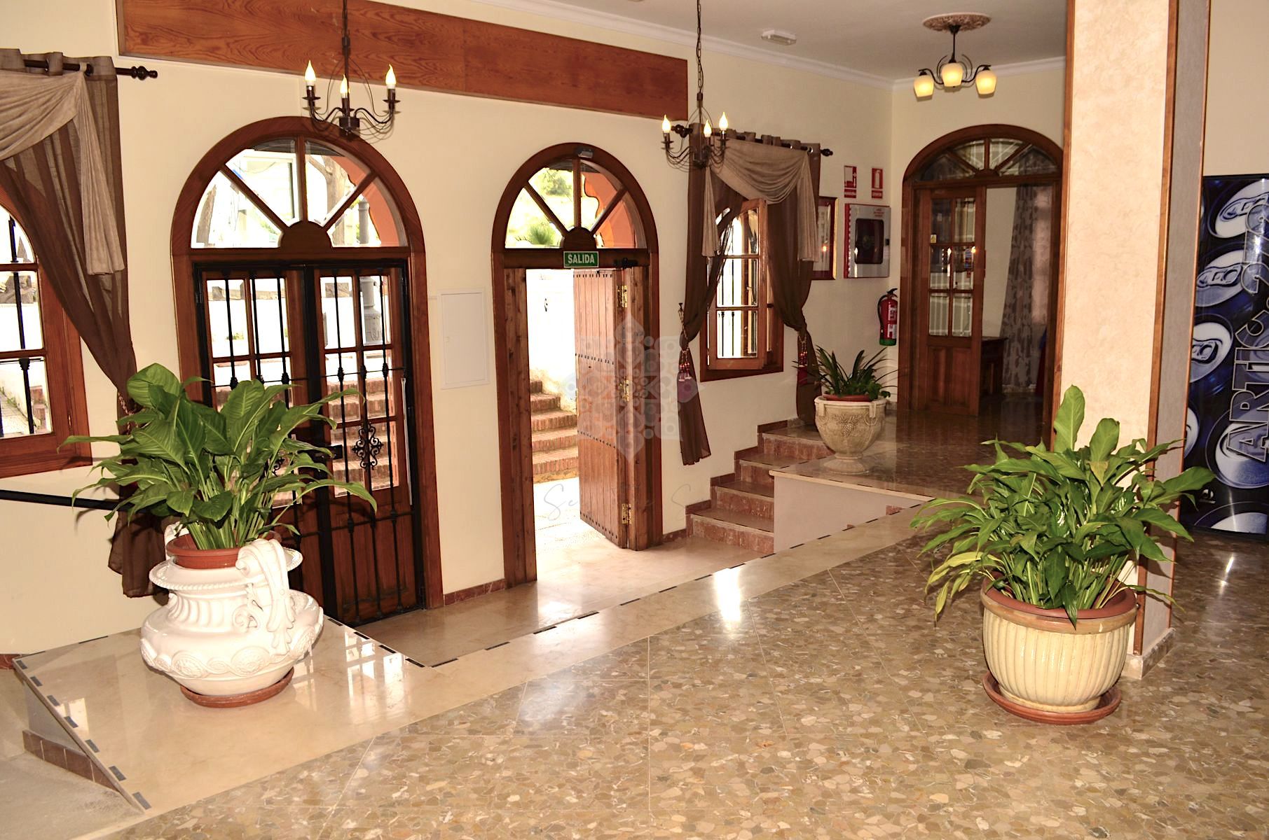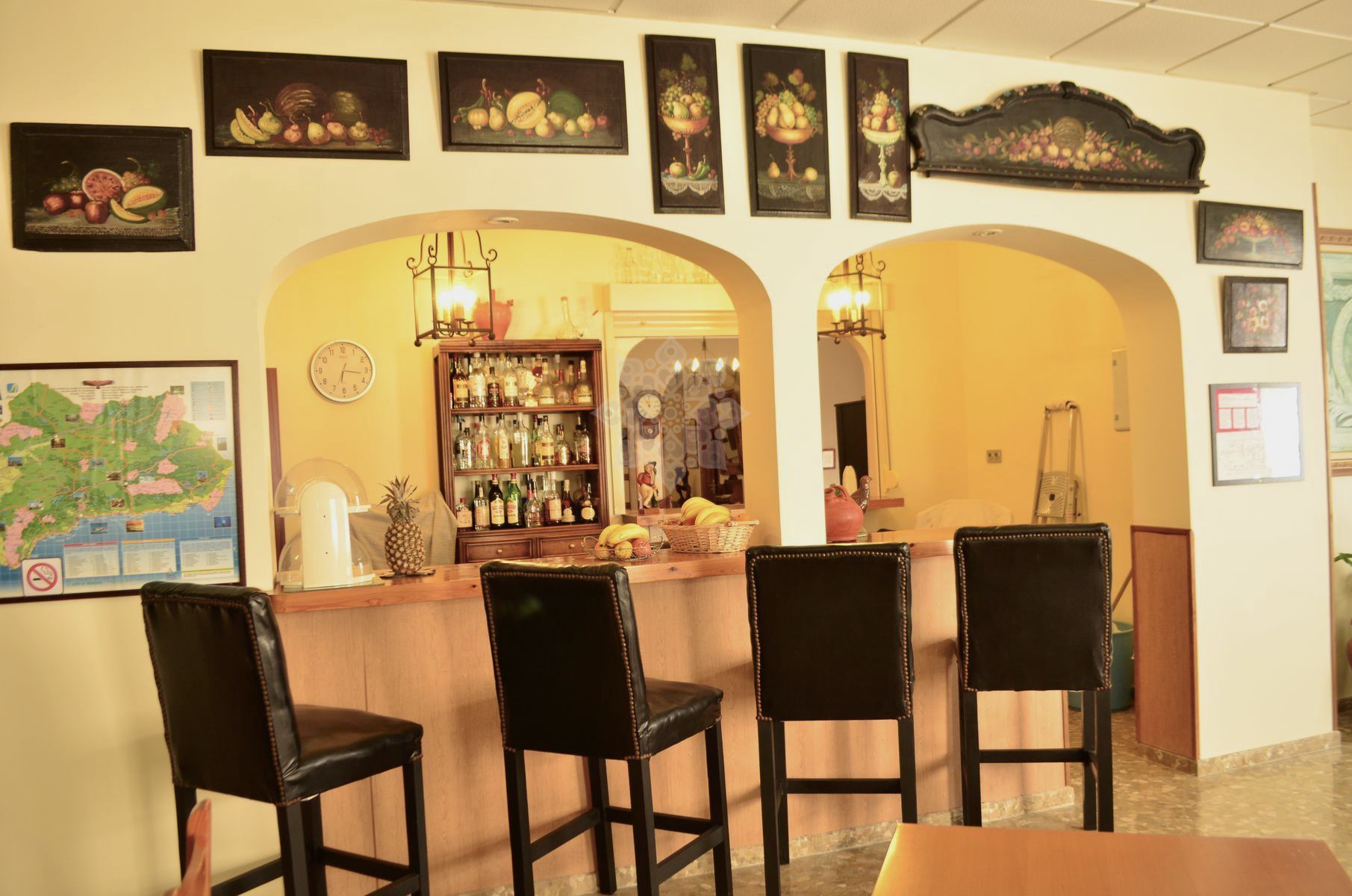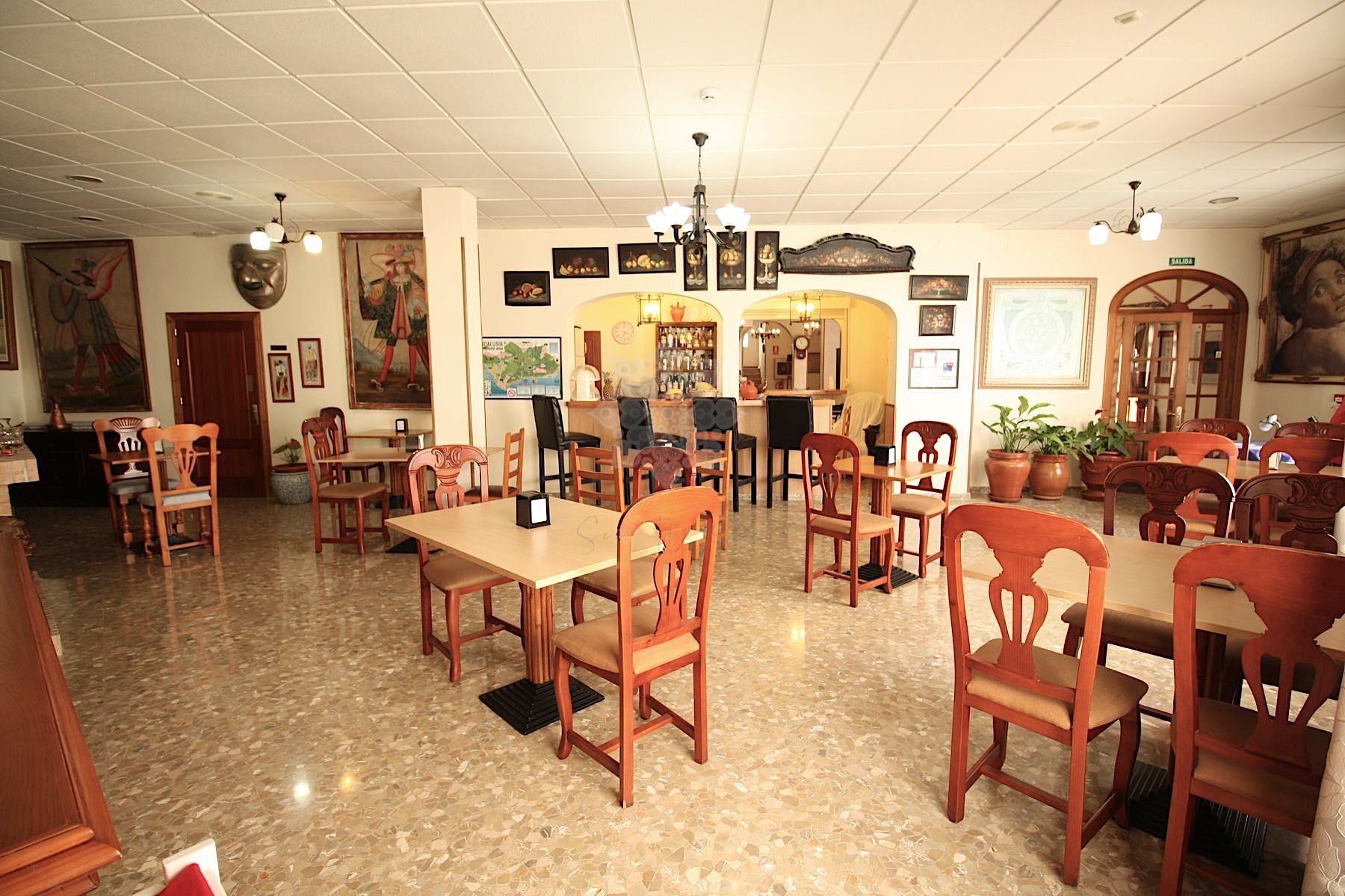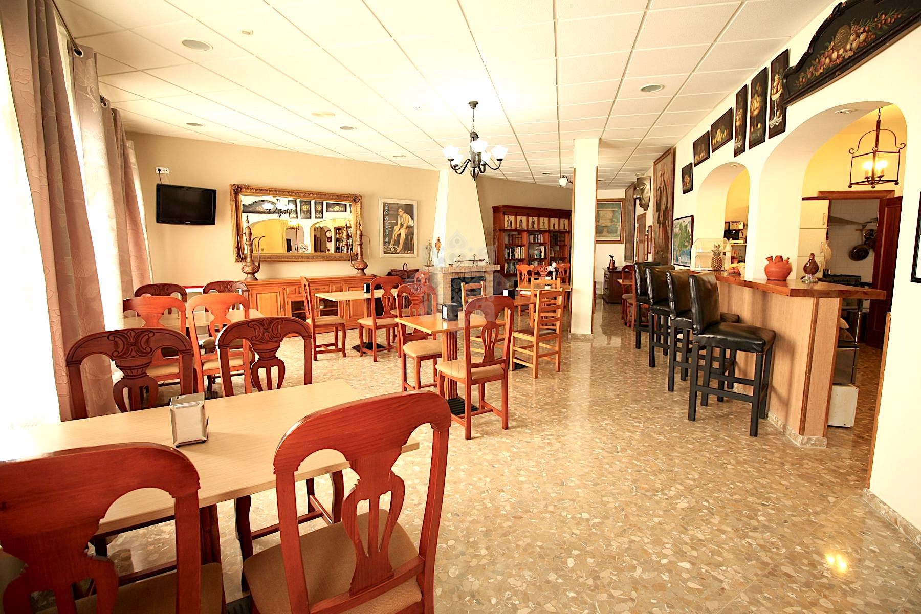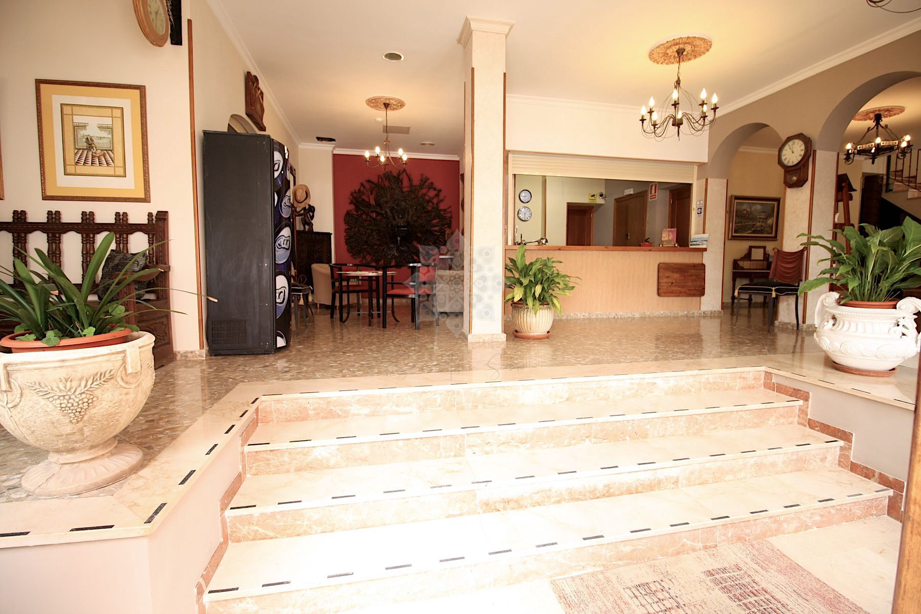 En la planta baja (431 m² construidos), se encuentran una amplia recepción, vestíbulo, sala de espera, almacén, oficina, salón, bar y cafetería con una pequeña cocina y 7 habitaciones, una de ellas totalmente adaptada para personas con discapacidad.