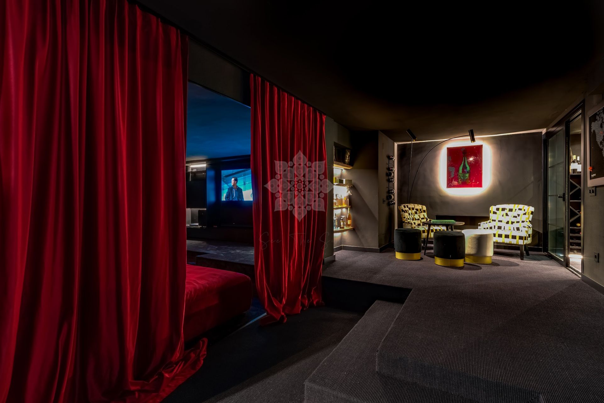 Sótano: Perfectamente diseñado para la relajación y el entretenimiento, el sótano cuenta con una sala de juegos, un elegante bar con área de salón, una sala de cine y una bodega. Este nivel también incluye dos dormitorios de invitados que comparten un baño y un generoso espacio de almacenamiento. Además, el sótano incluye un garaje y una sala de máquinas.
