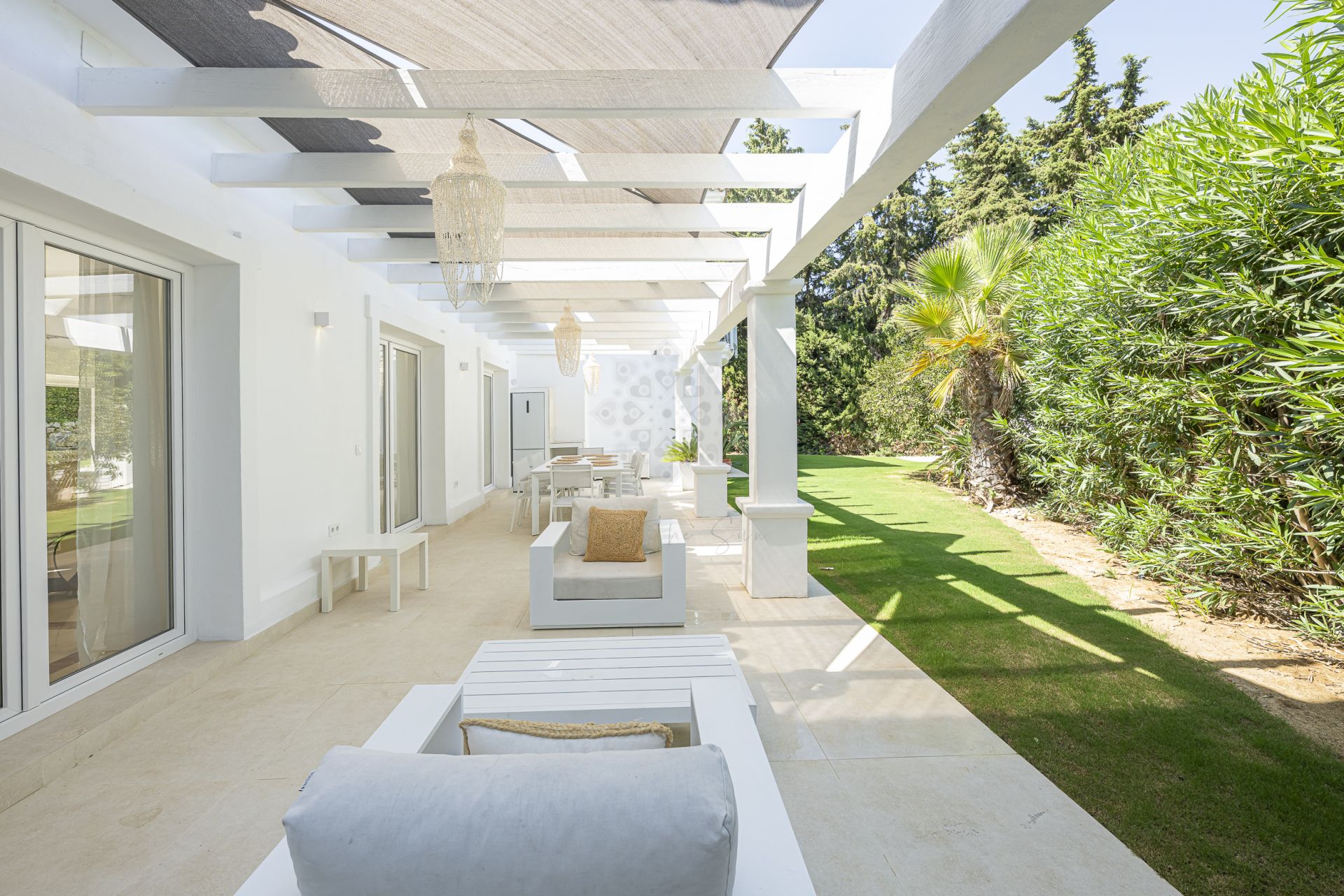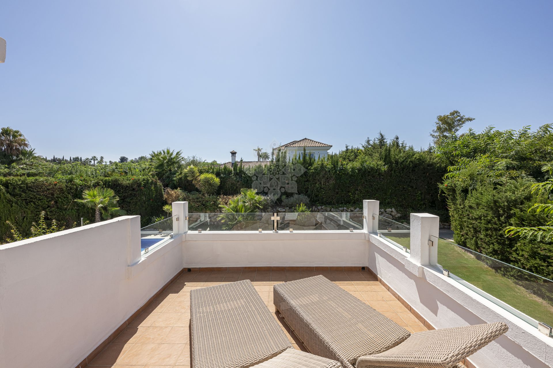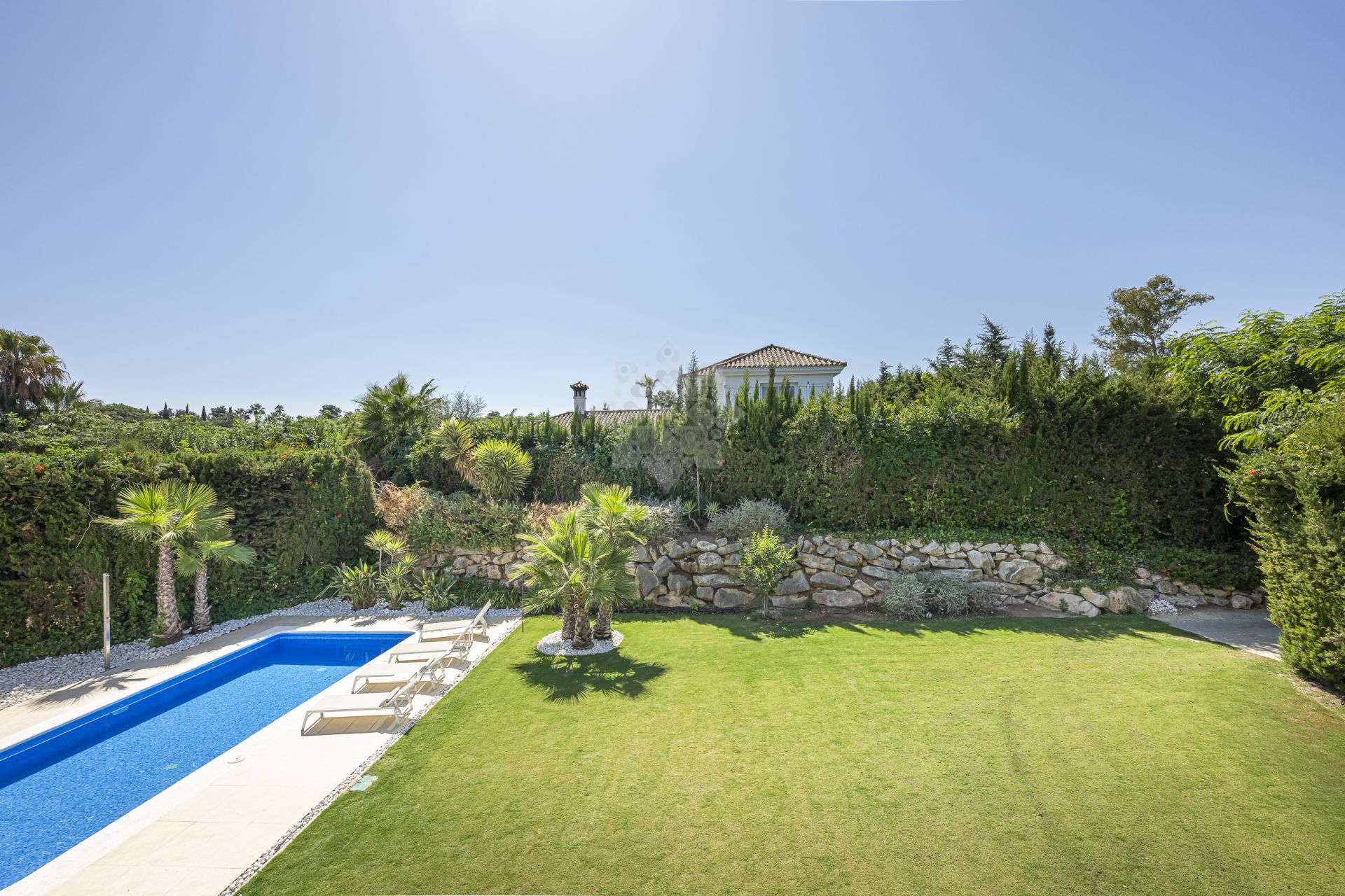 Características destacadas • Cinco dormitorios ensuite, incluidos dos principales • Luminoso salón de planta abierta con comedor y cocina • Amplias terrazas a ambos lados de la villa • Piscina privada y jardines cuidados • Aire acondicionado y calefacción central • Chimenea • Sistema de riego automático • Ubicación cercana a colegios internacionales, campos de golf y de polo