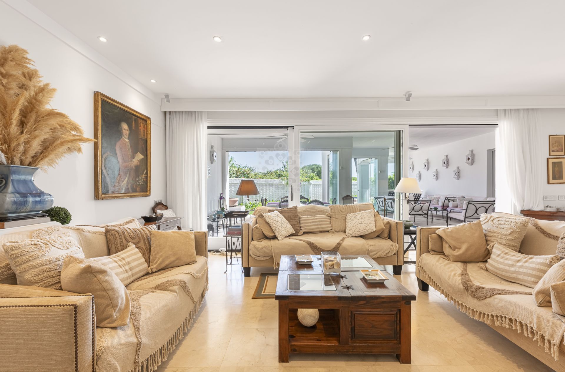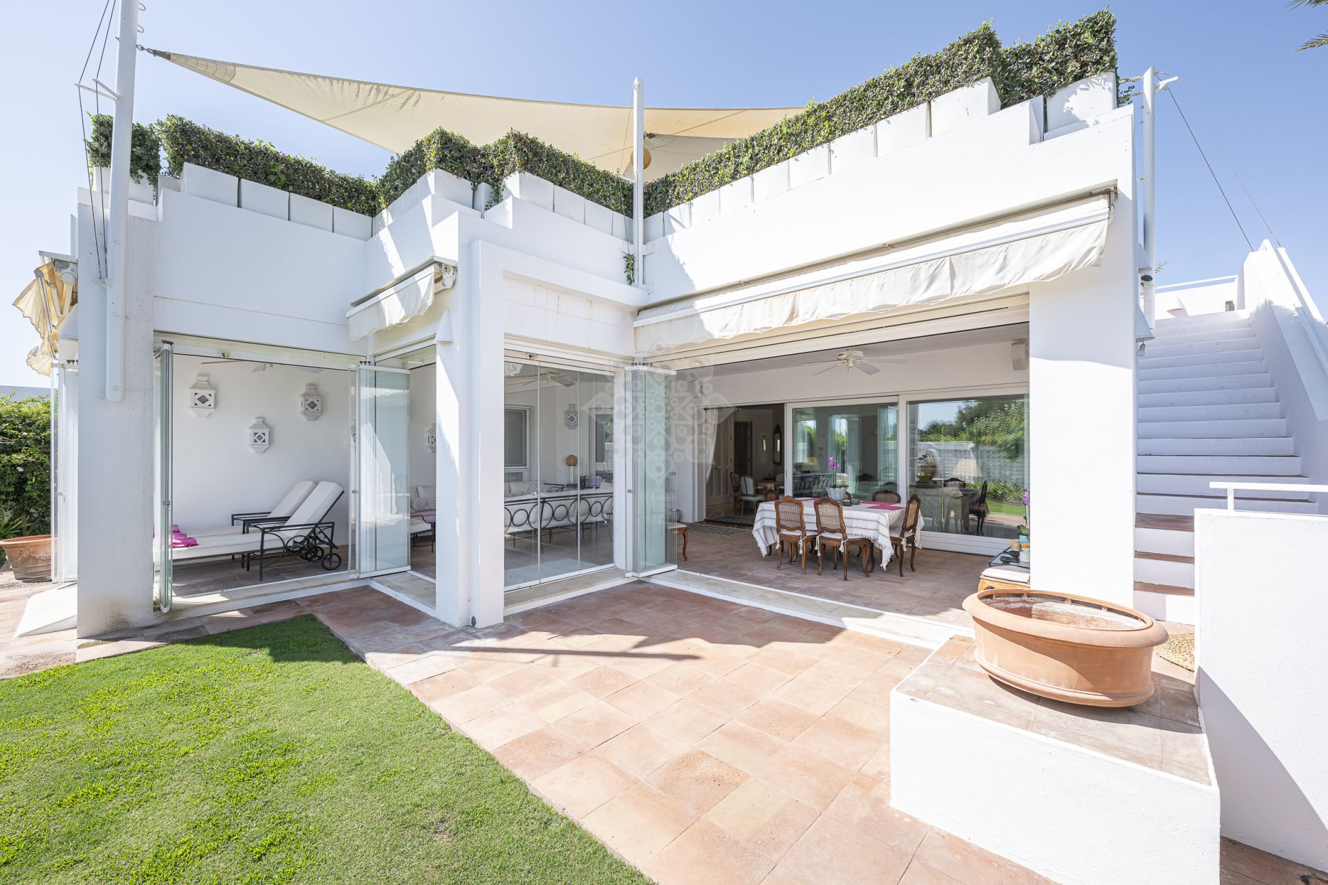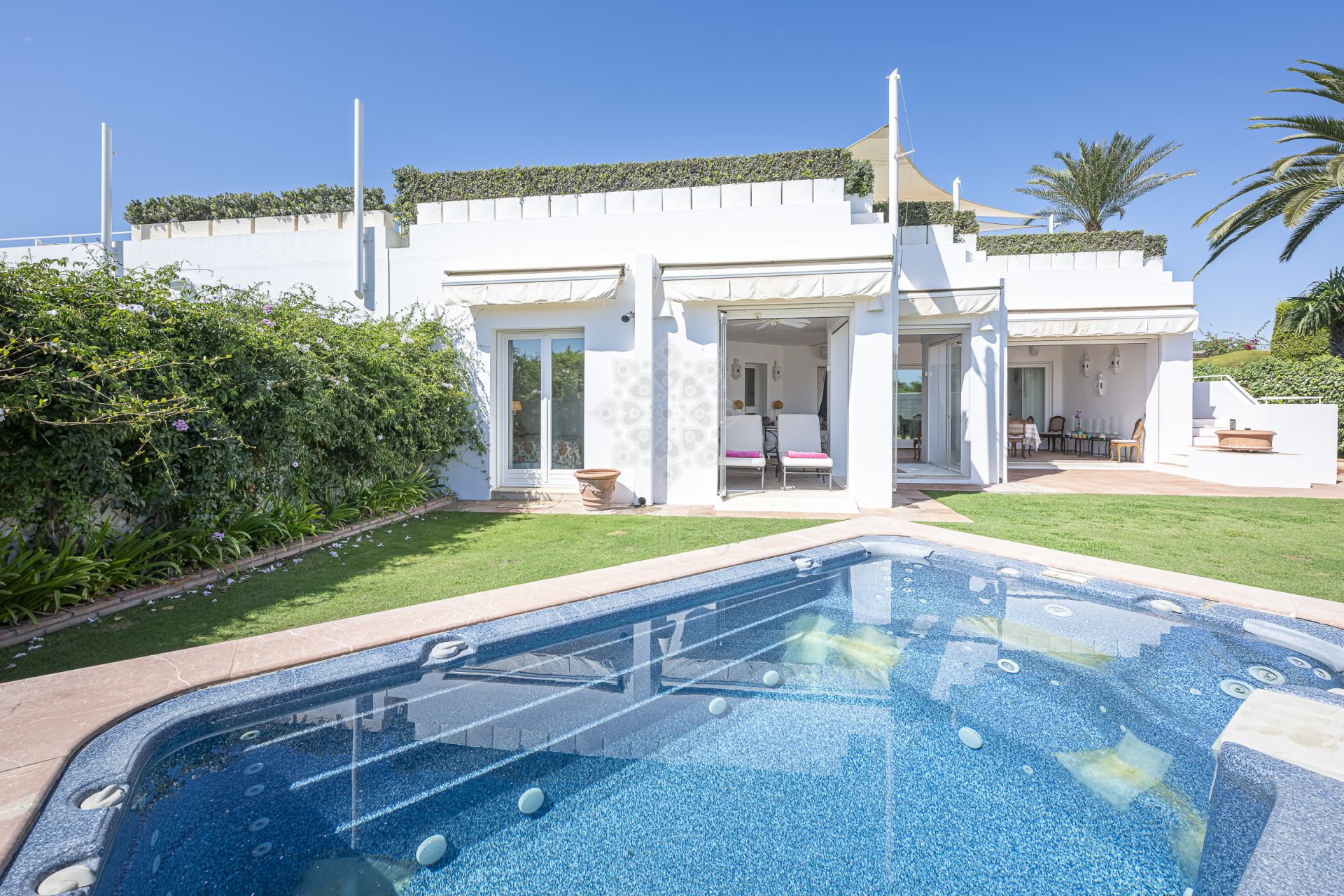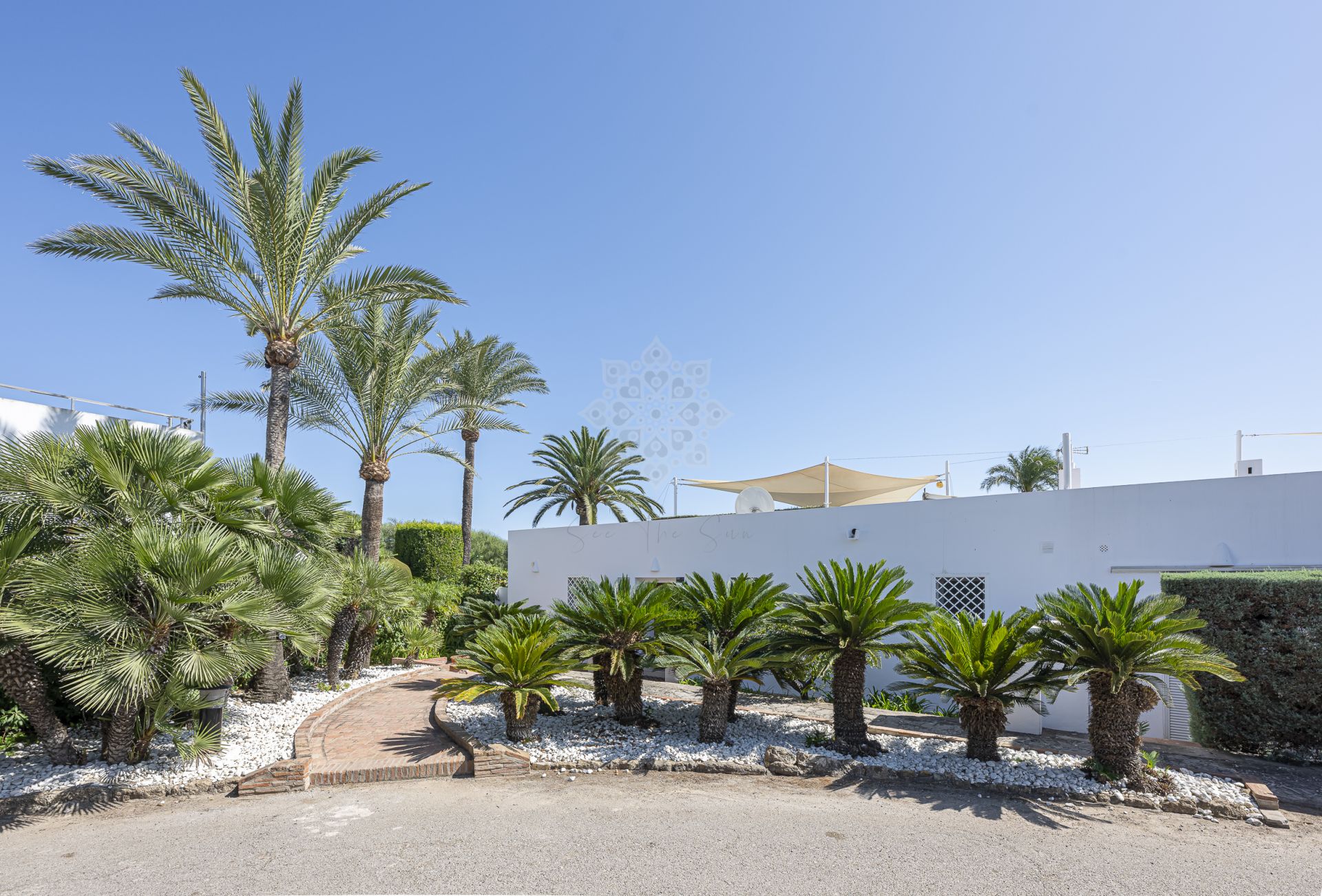 Una de las muy pocas propiedades frente a la playa en Sotogrande, situada en la prestigiosa urbanización cerrada “Bungalows”, junto al Real Club de Golf de Sotogrande y a solo metros de la playa.